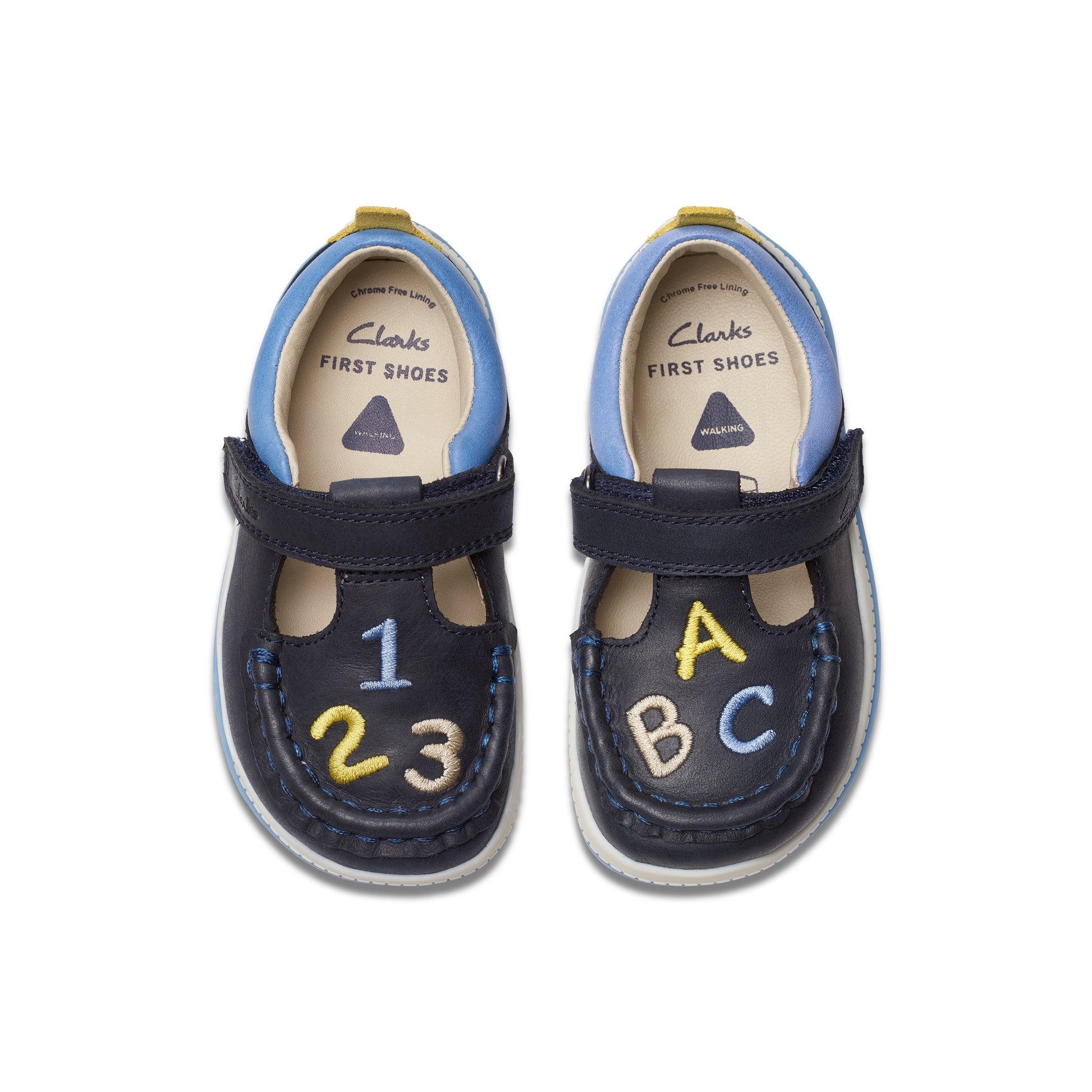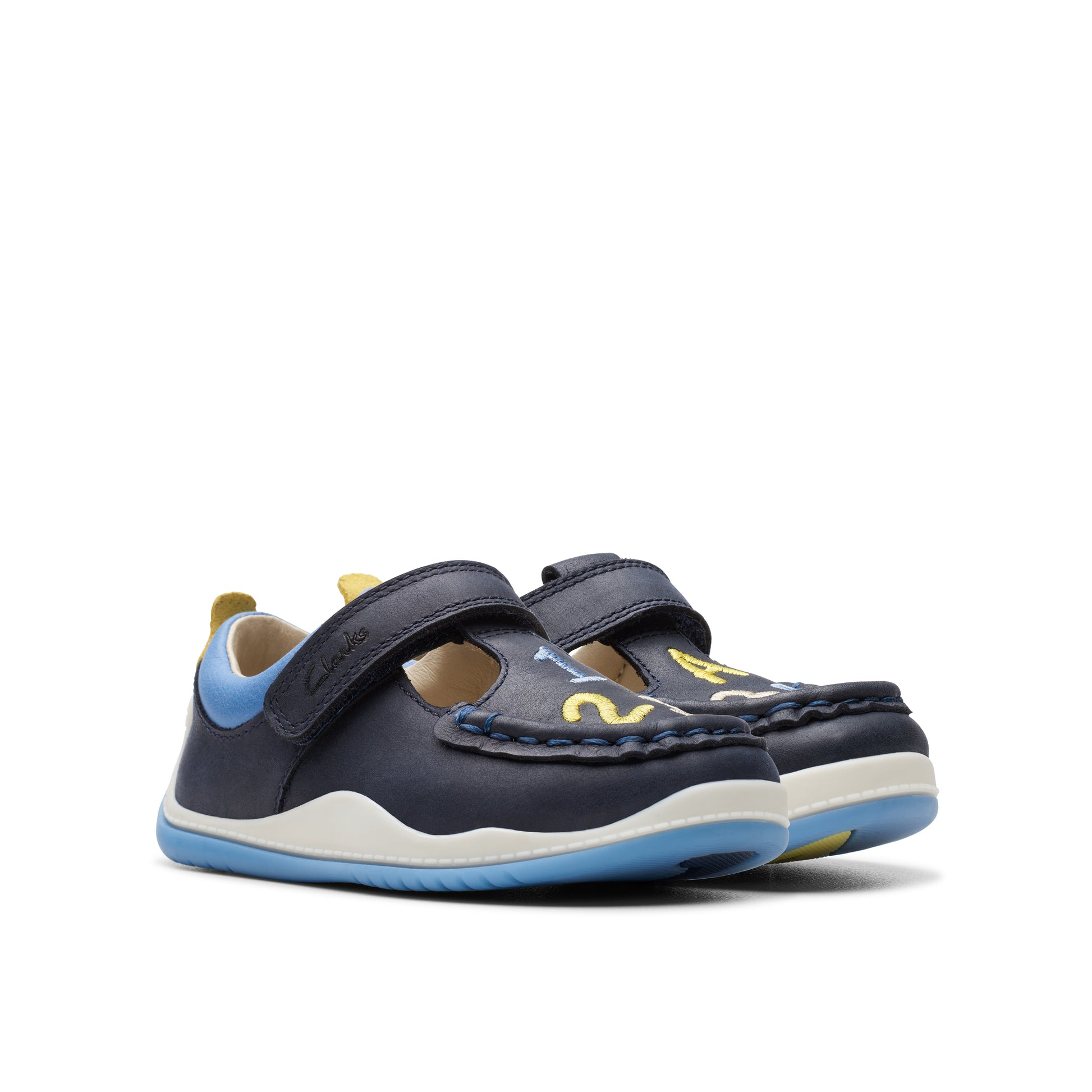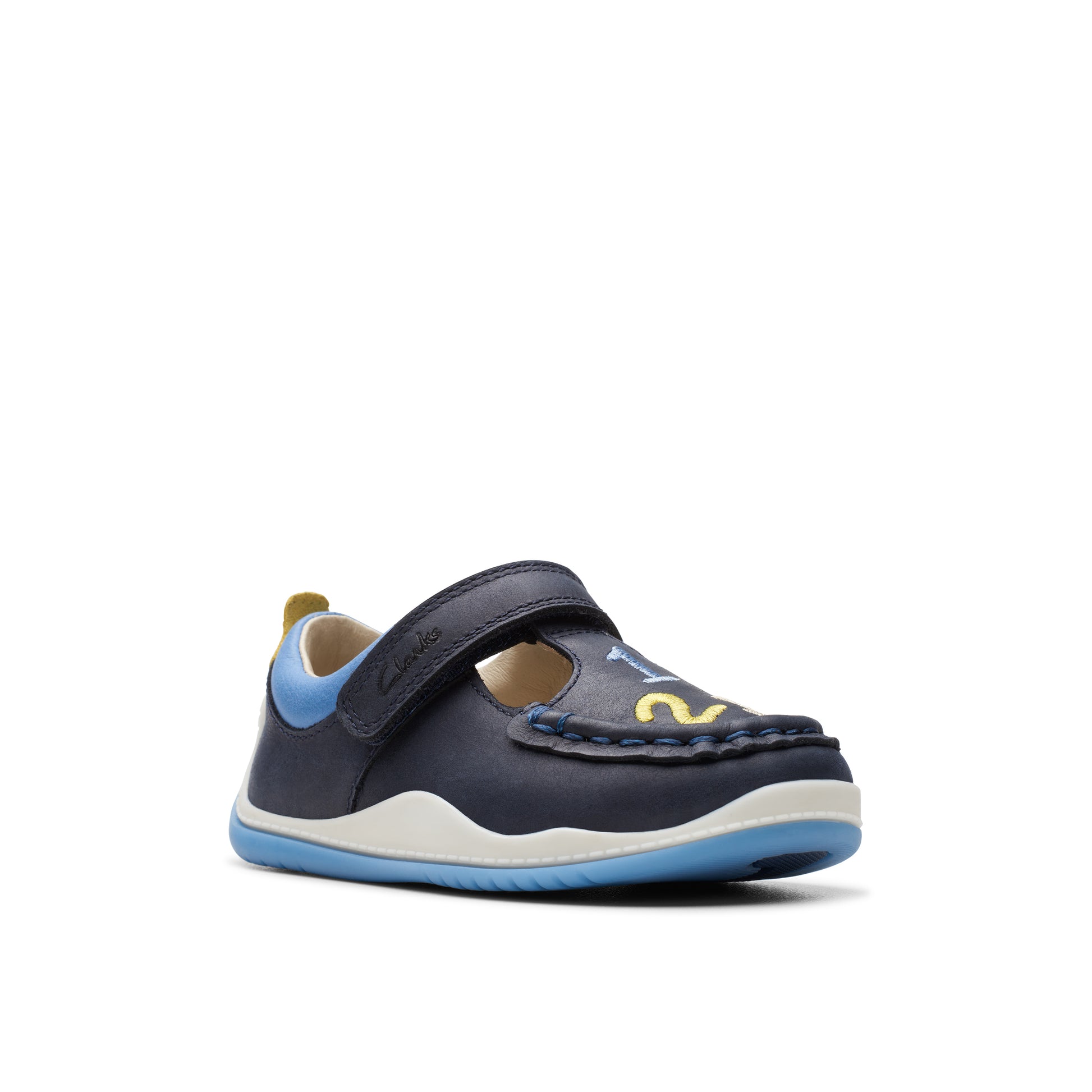 Clarks Noodle Shine T Girls Navy T-Bar Shoe