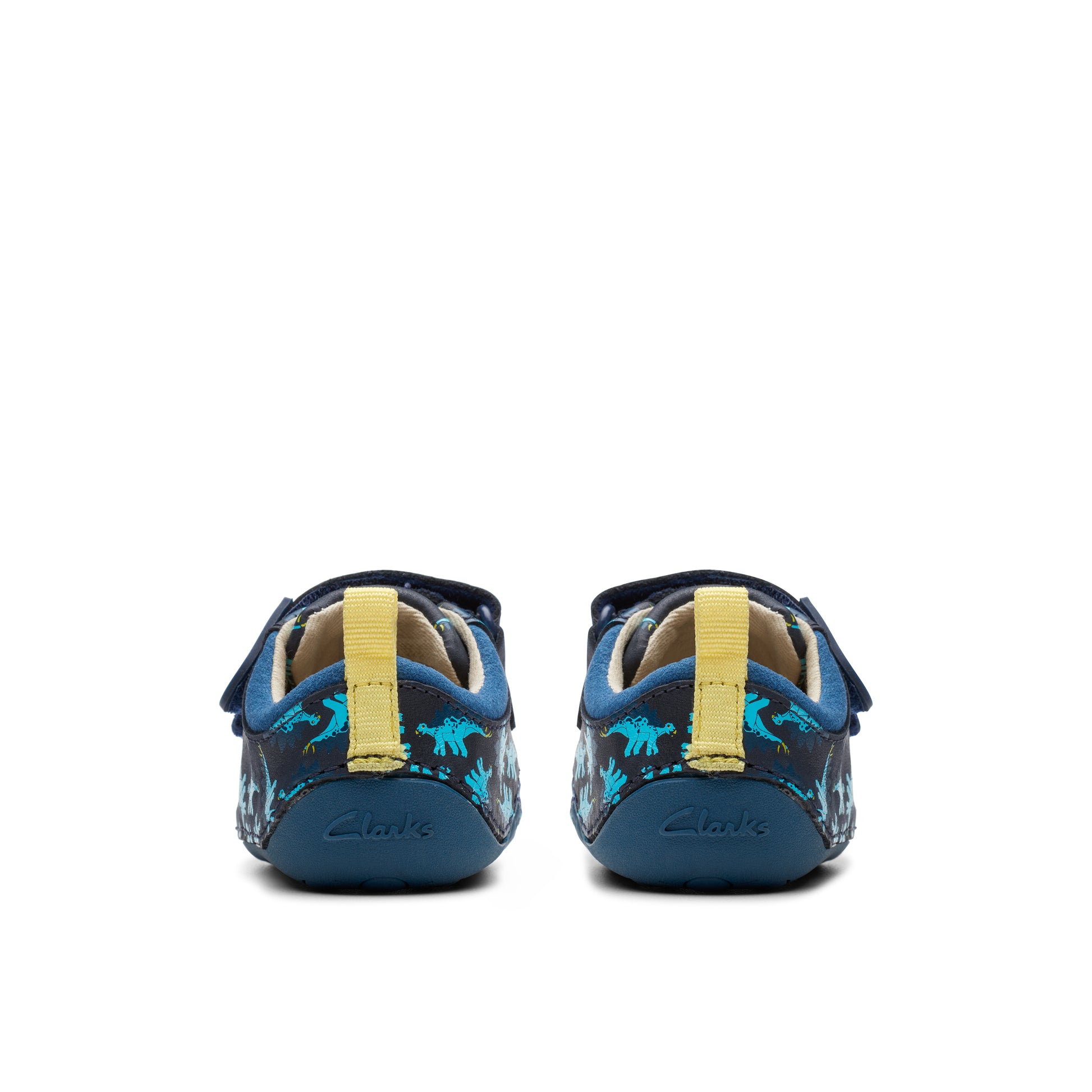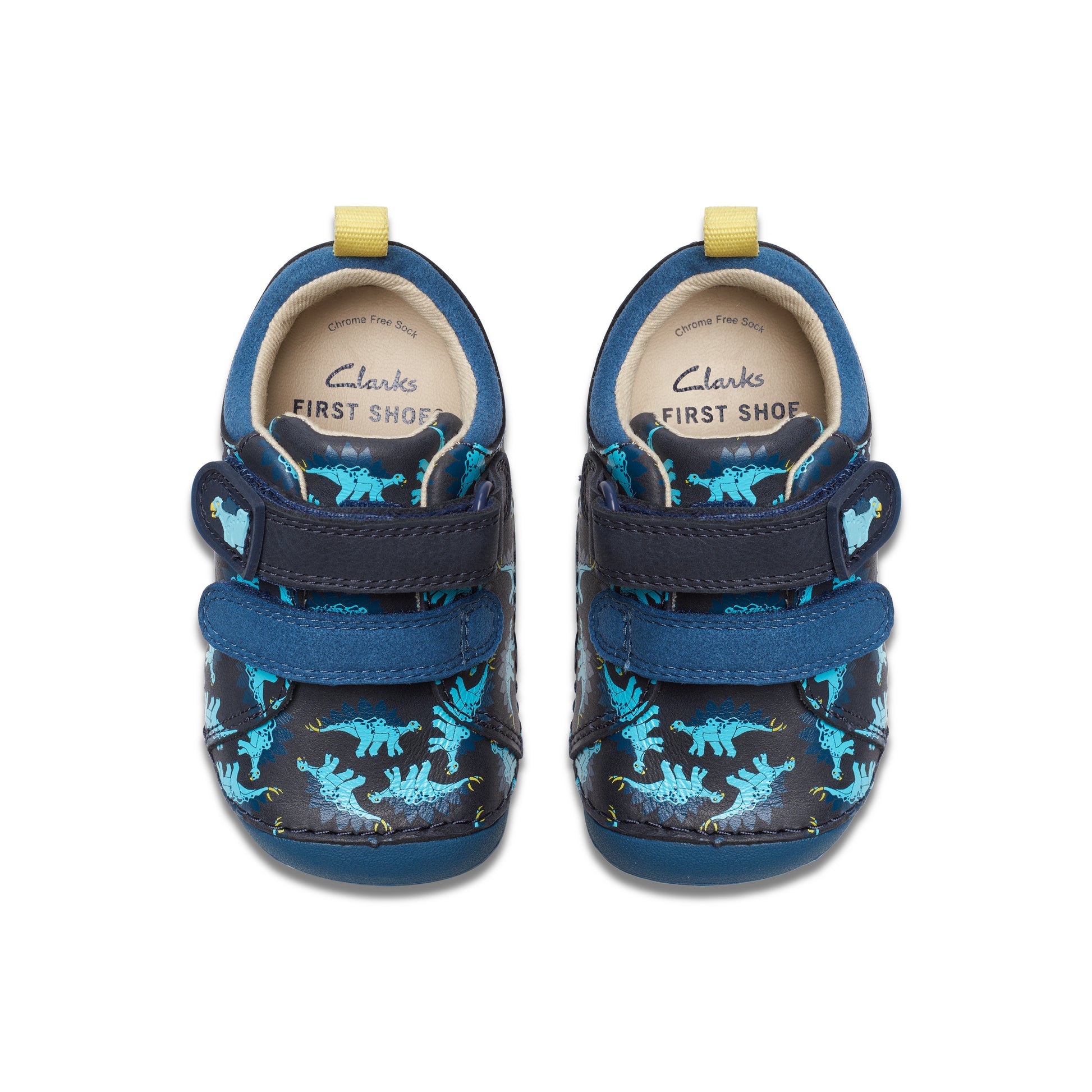 Clarks Tiny Stomp T Boys Navy Dinosaur Pre-Walker Shoes