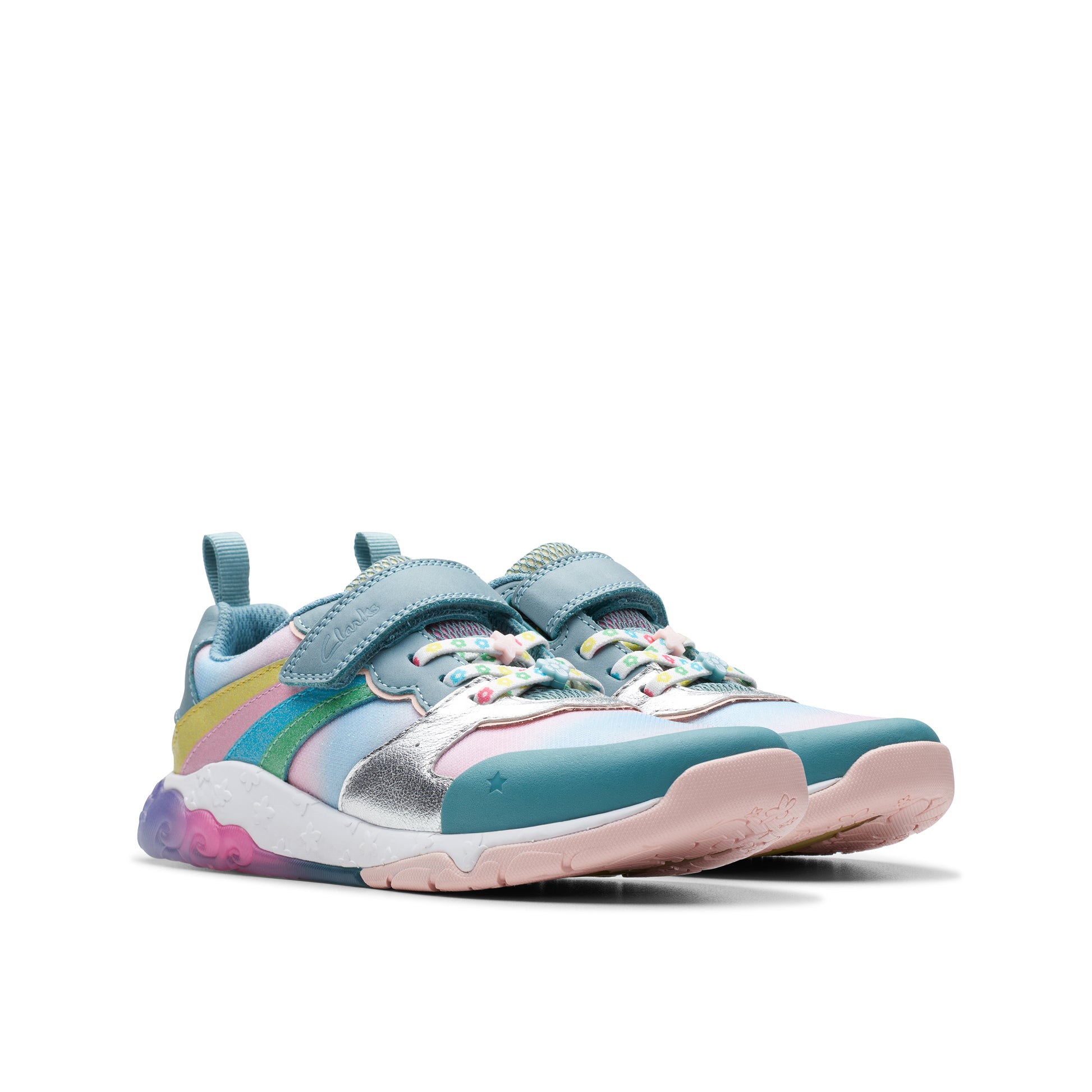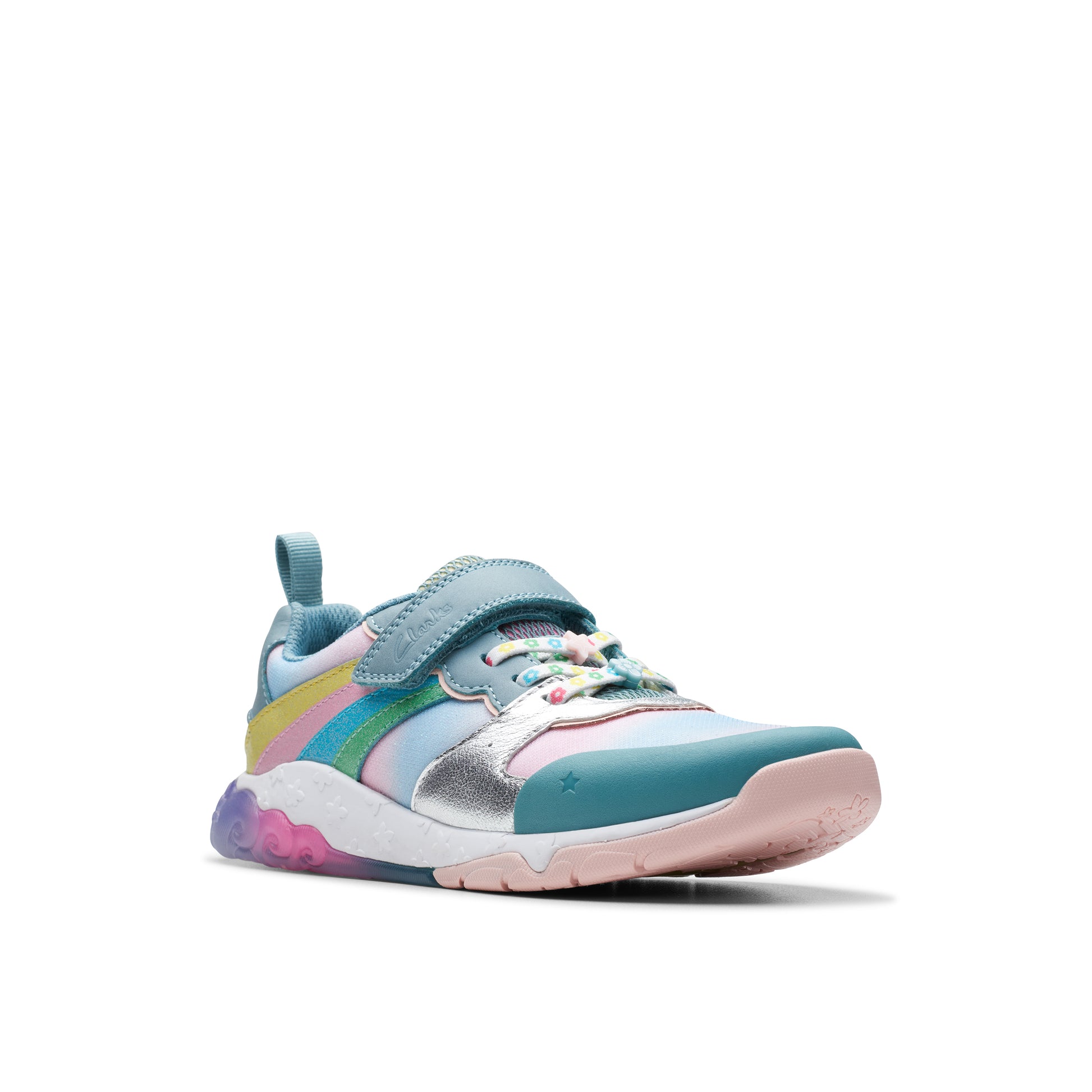 Clarks Tidal Star K Girls Aqua Rainbow Trainer