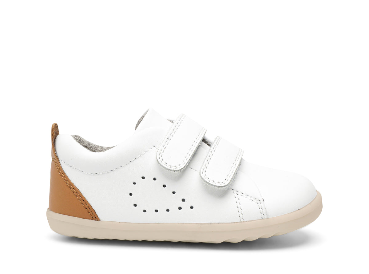 Bobux Grass Court Infants White Caramel Trainer Shoe