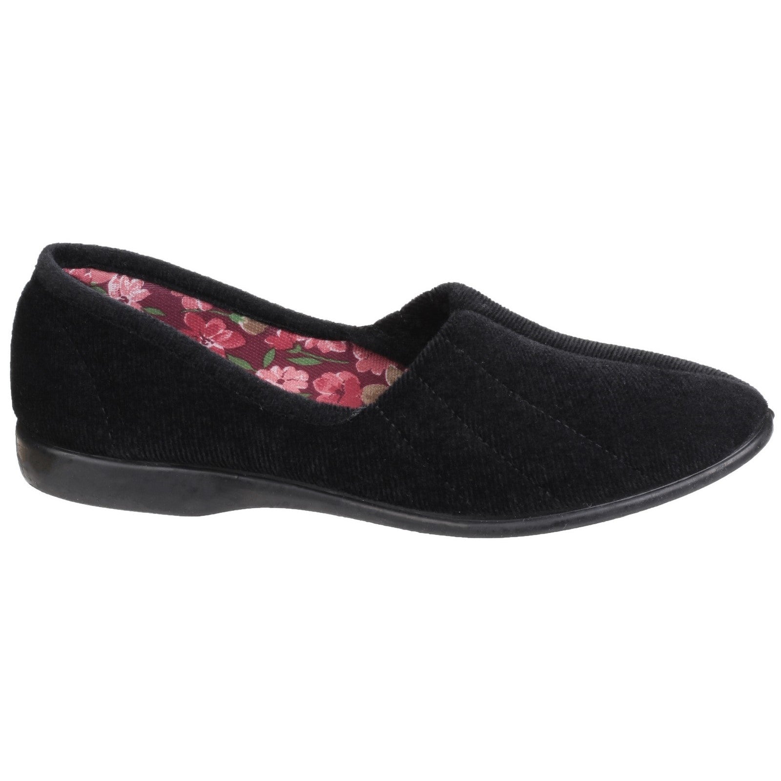 Slip into a comfortable pair of Audrey slippers from GBS. Features a decorative floral cotton lining. The stretch velour upper offers superb fit. Cushioned insole for high comfort and fit. Non-marking vulcanised rubber sole.