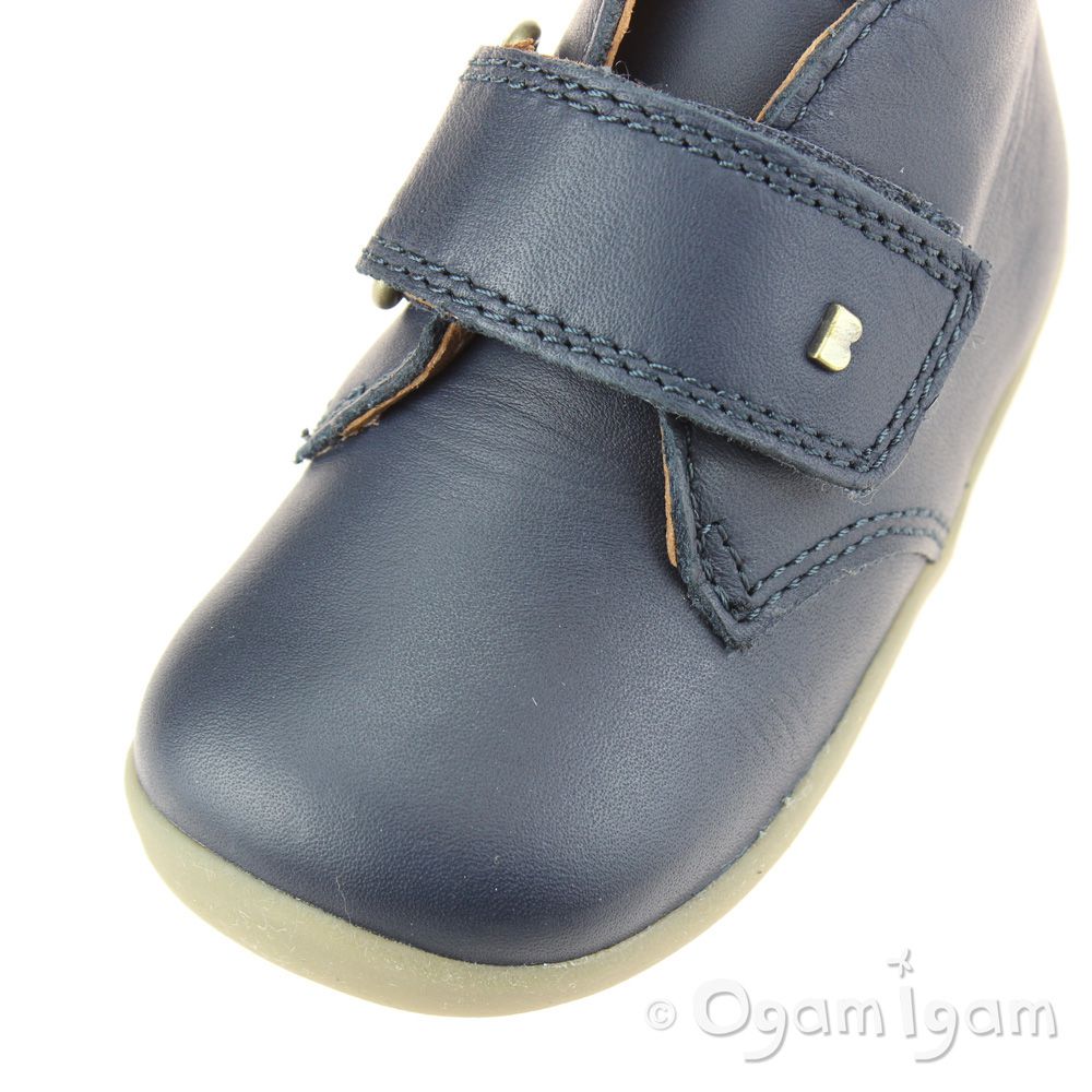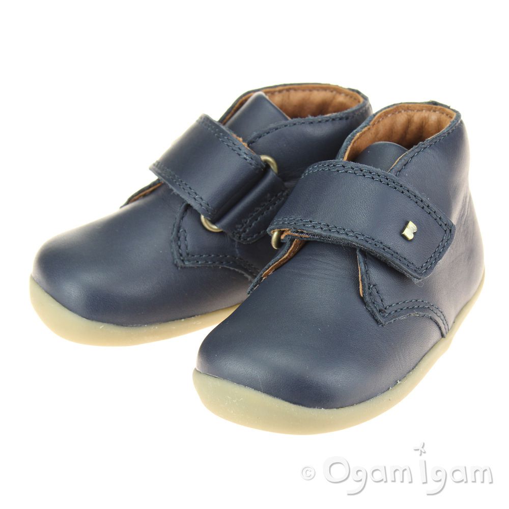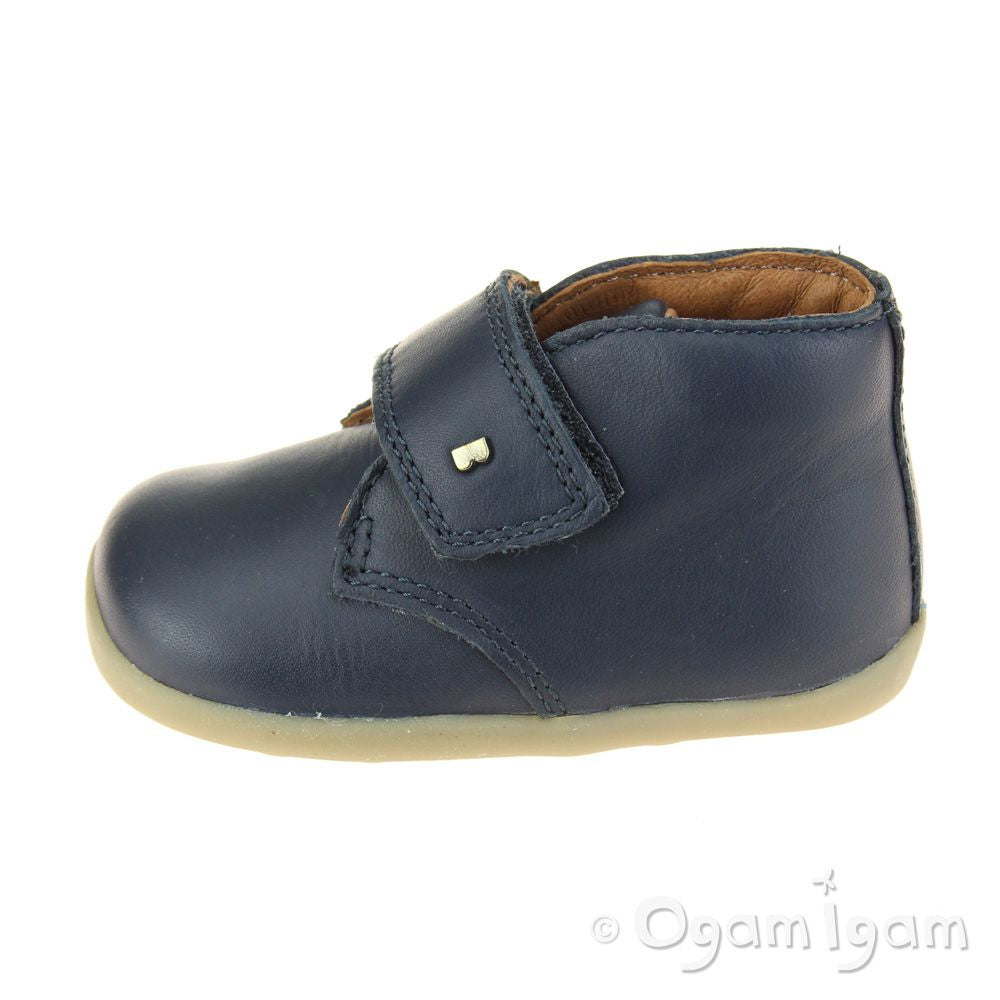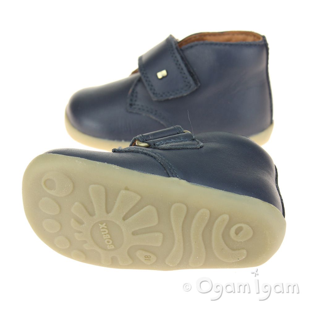 The Bobux Desert Boot is a supportive and lightweight first walker that’s perfect for the colder months. The shoe has traditional appeal with a smooth navy leather upper and bronze Bobux icon embellishment. The classic style has a wide strap closure that secures the ankle high style to the foot. The boot is supportive with an all leather lining to nurture growing feet. A flexible sole unit completes the boot.