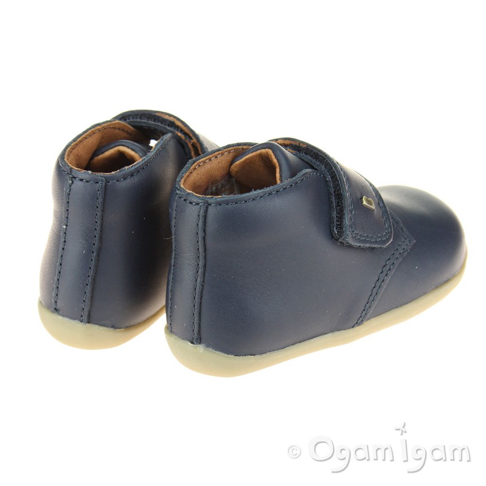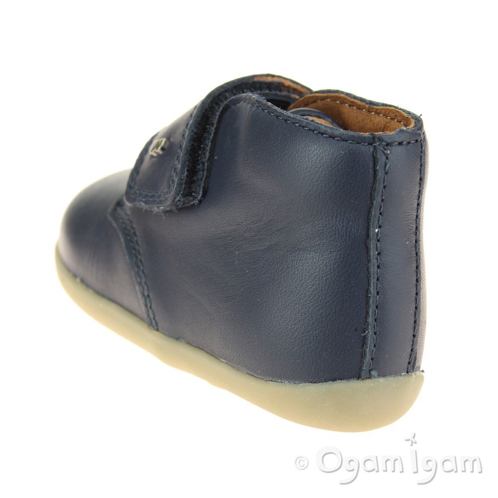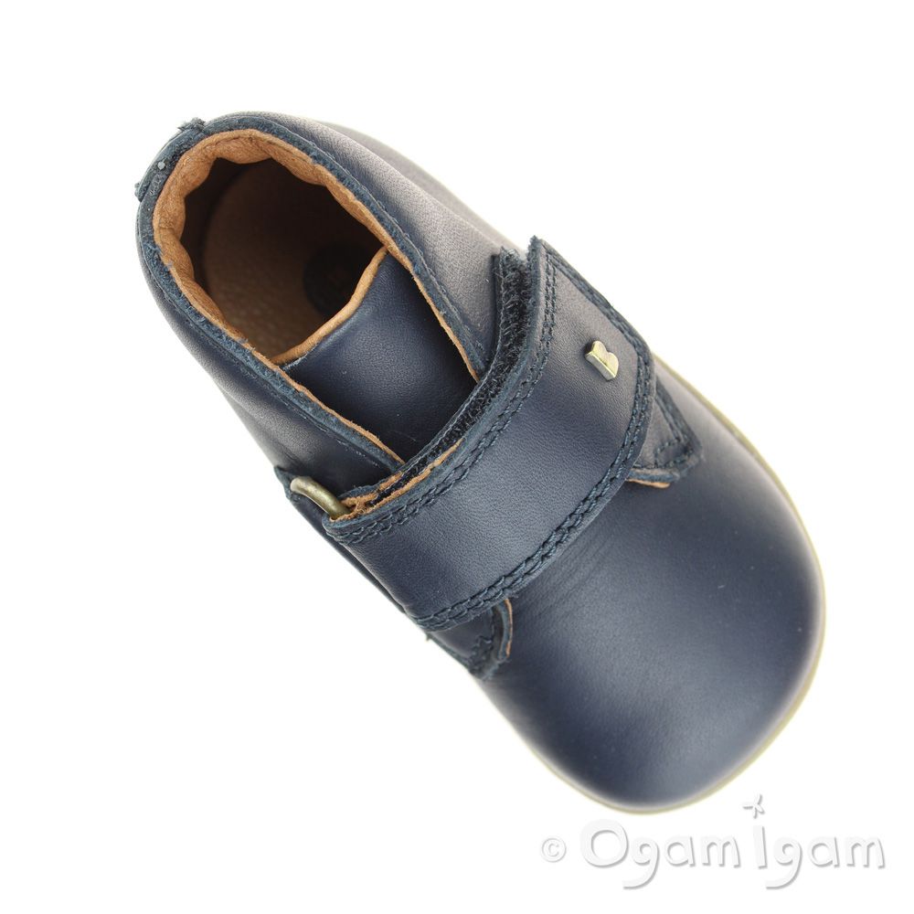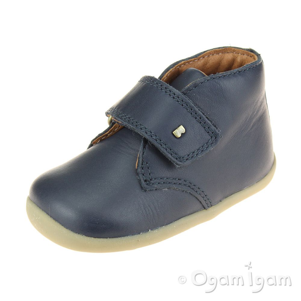 The Bobux Desert Boot is a supportive and lightweight first walker that’s perfect for the colder months. The shoe has traditional appeal with a smooth navy leather upper and bronze Bobux icon embellishment. The classic style has a wide strap closure that secures the ankle high style to the foot. The boot is supportive with an all leather lining to nurture growing feet. A flexible sole unit completes the boot.