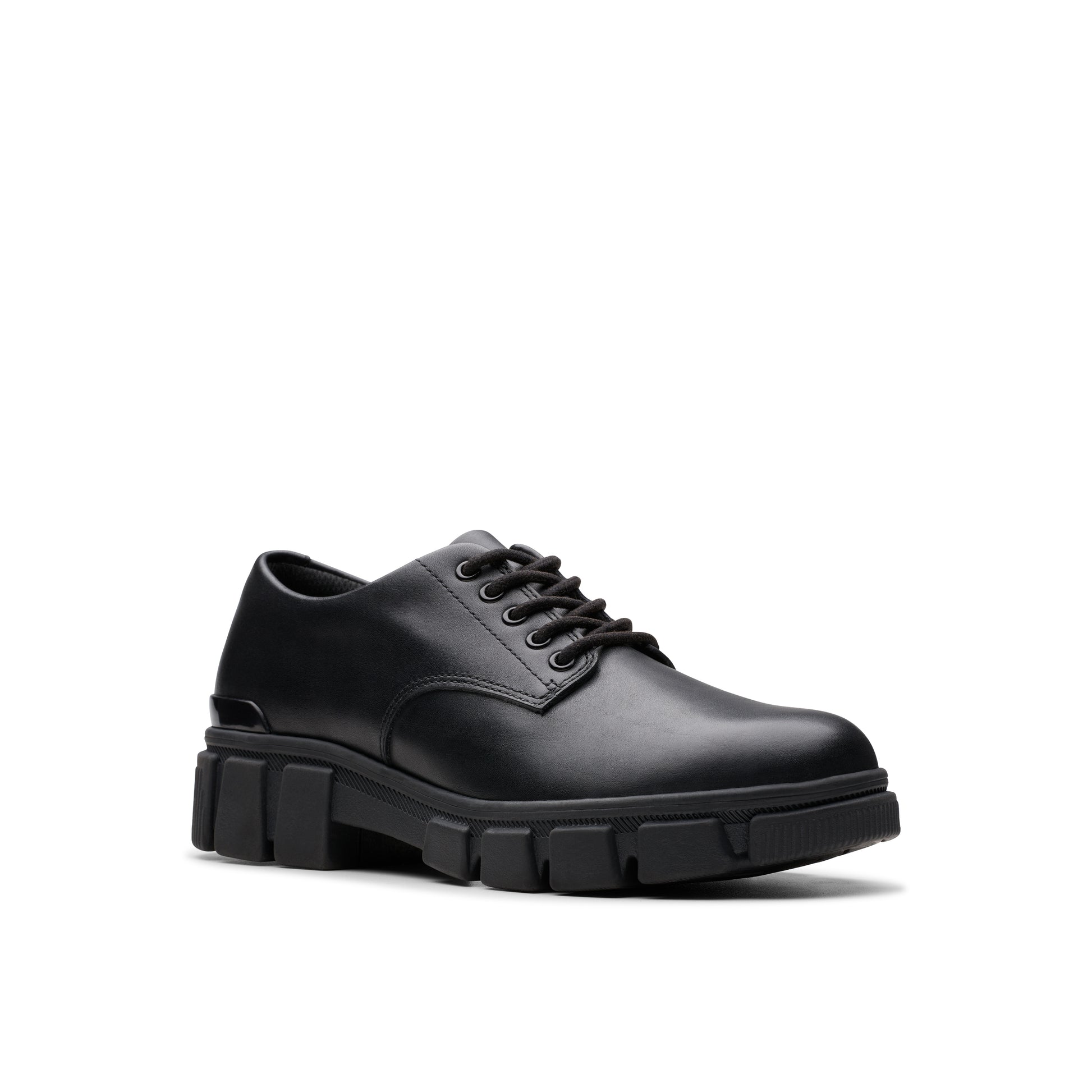 Clarks Evyn Lace Y Girls Black Chunky School Shoe