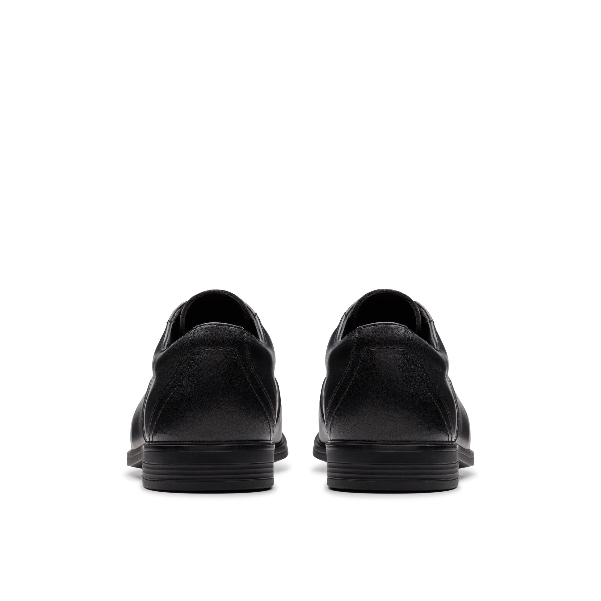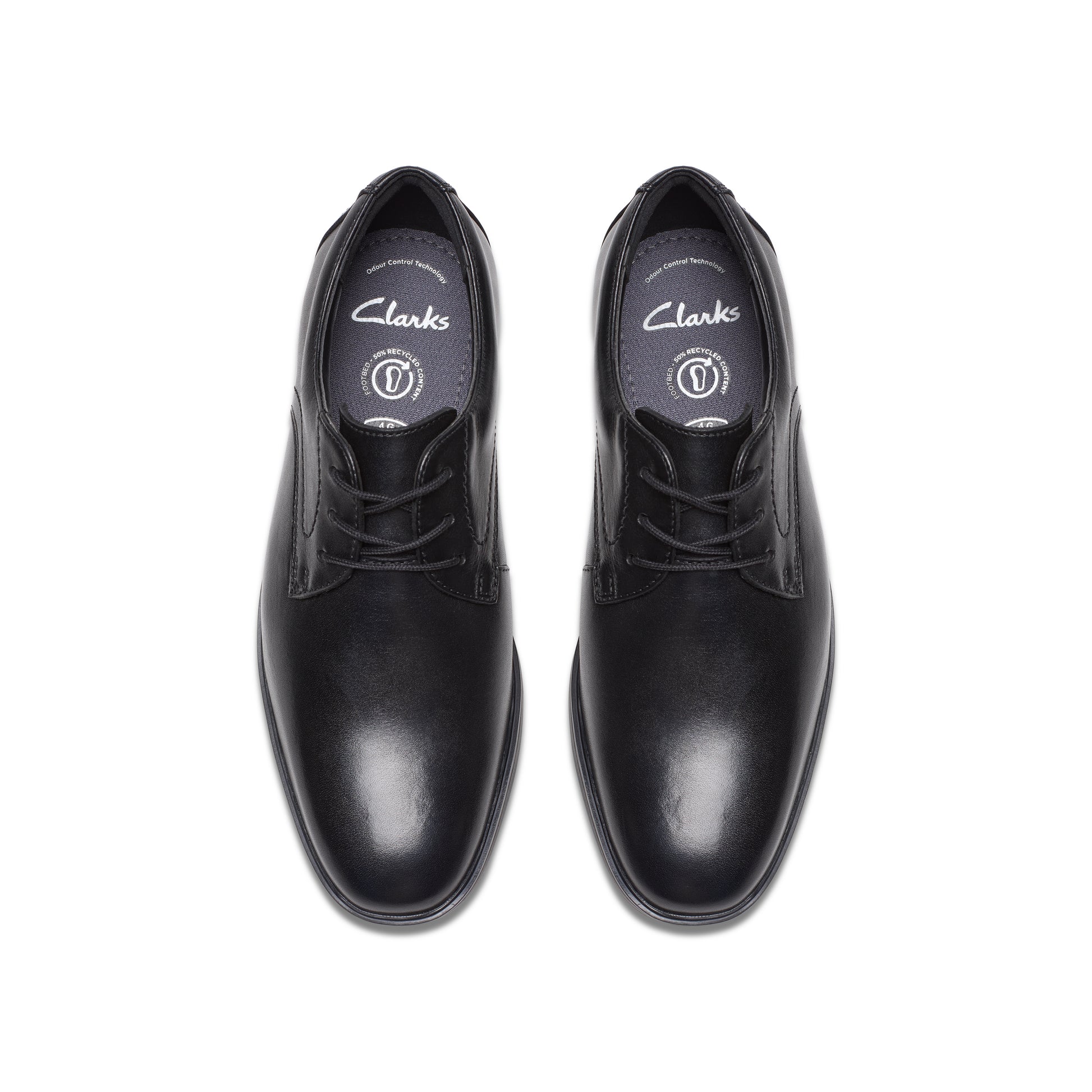 Discover these classic secondary school shoes, Clarks Jonwin Step Boys Black School Shoe. Offering a traditional smart look, these breathable, black leather lace-up shoes have a clean, minimal aesthetic perfect for school. The durable rubber sole unit is lightweight and enhances movement of the foot thanks to the flex grooves, while an Agion infused lining and eco foam lined sock provides a fresh, comfortable feel that lasts.