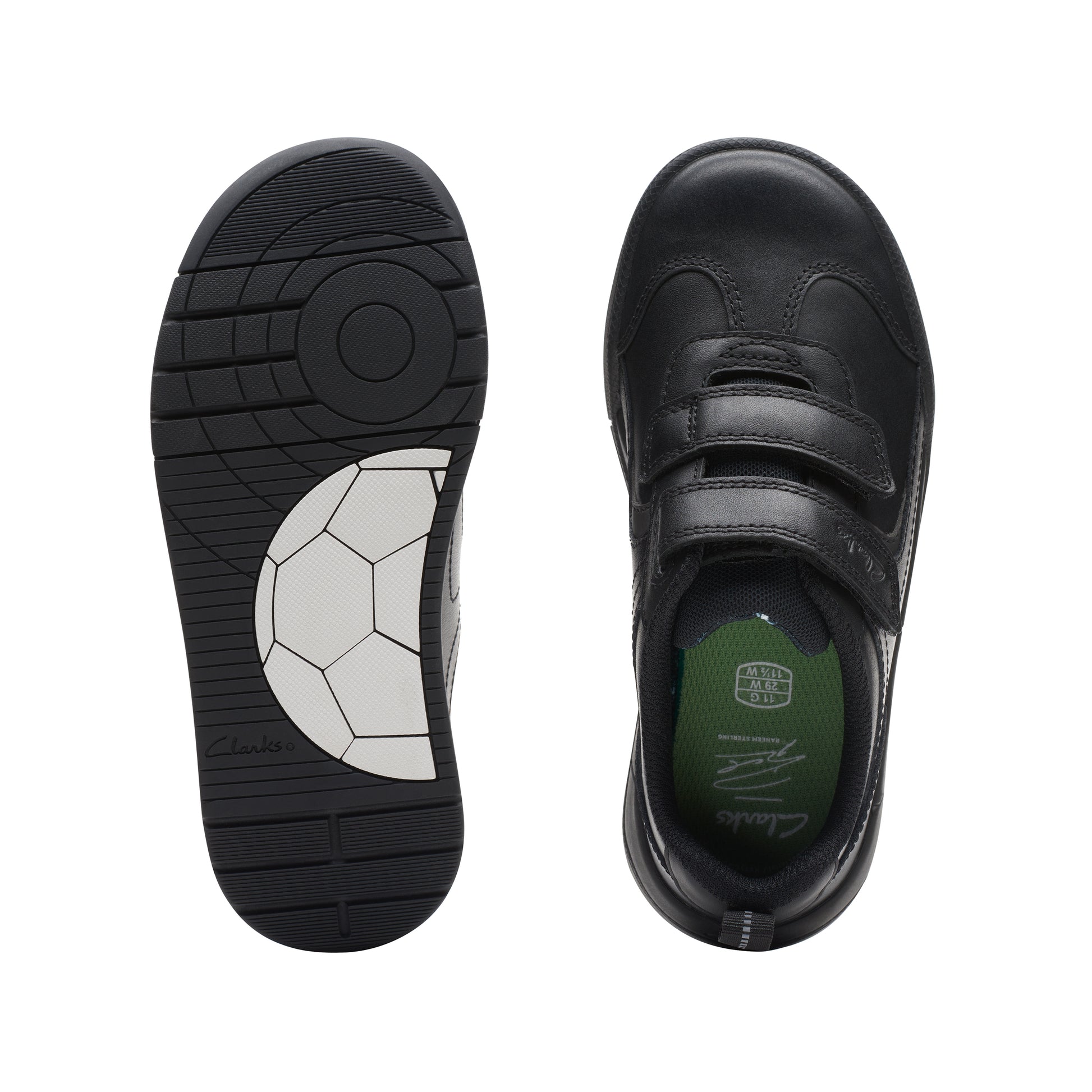 Score big with the Clarks Kick Pace Boys Black School Shoe! This sturdy shoe is perfect for school with its football print sole, providing both style and durability. Go the distance and look cool while doing it.