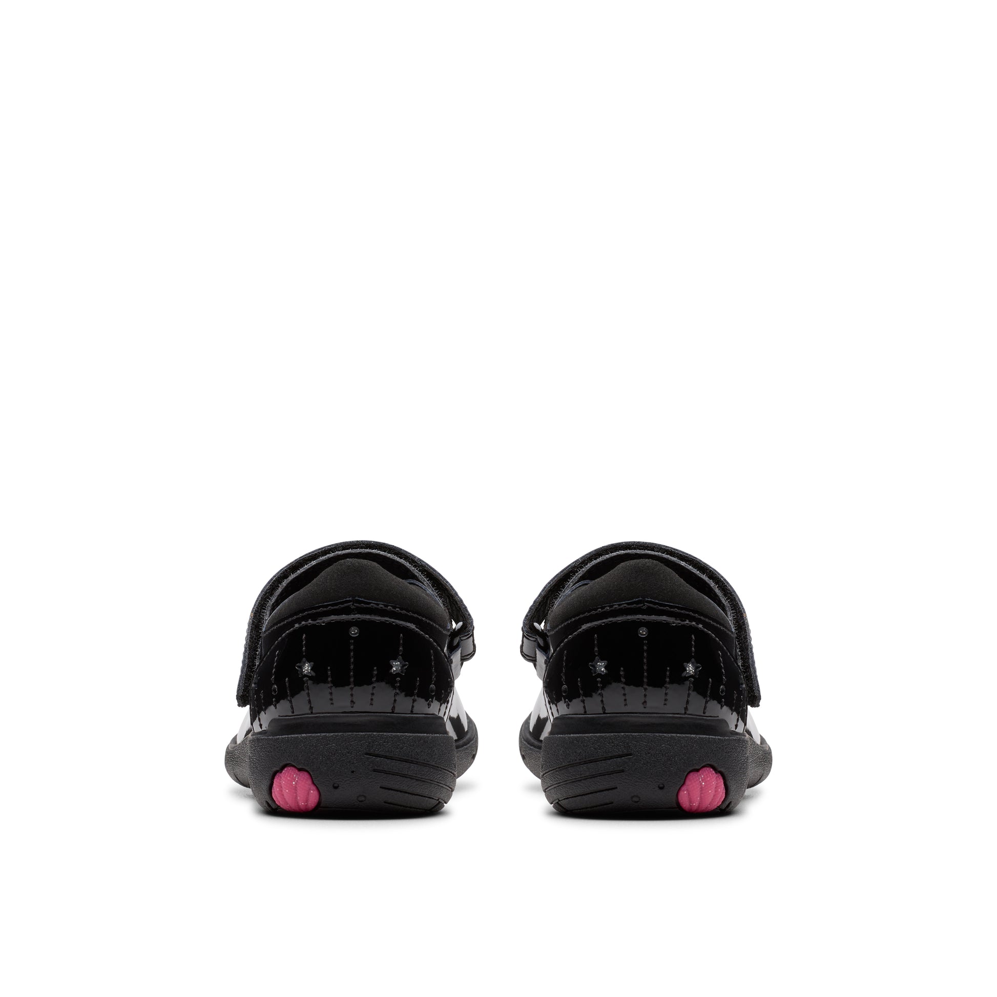 Sparkle with every step in these Clarks Relda Wish black patent school shoes! Perfect for little fashionistas, these black beauties feature magical shooting star details that add a touch of wonder to uniform days. The single strap fastening makes morning routines a breeze and is easily adjustable.