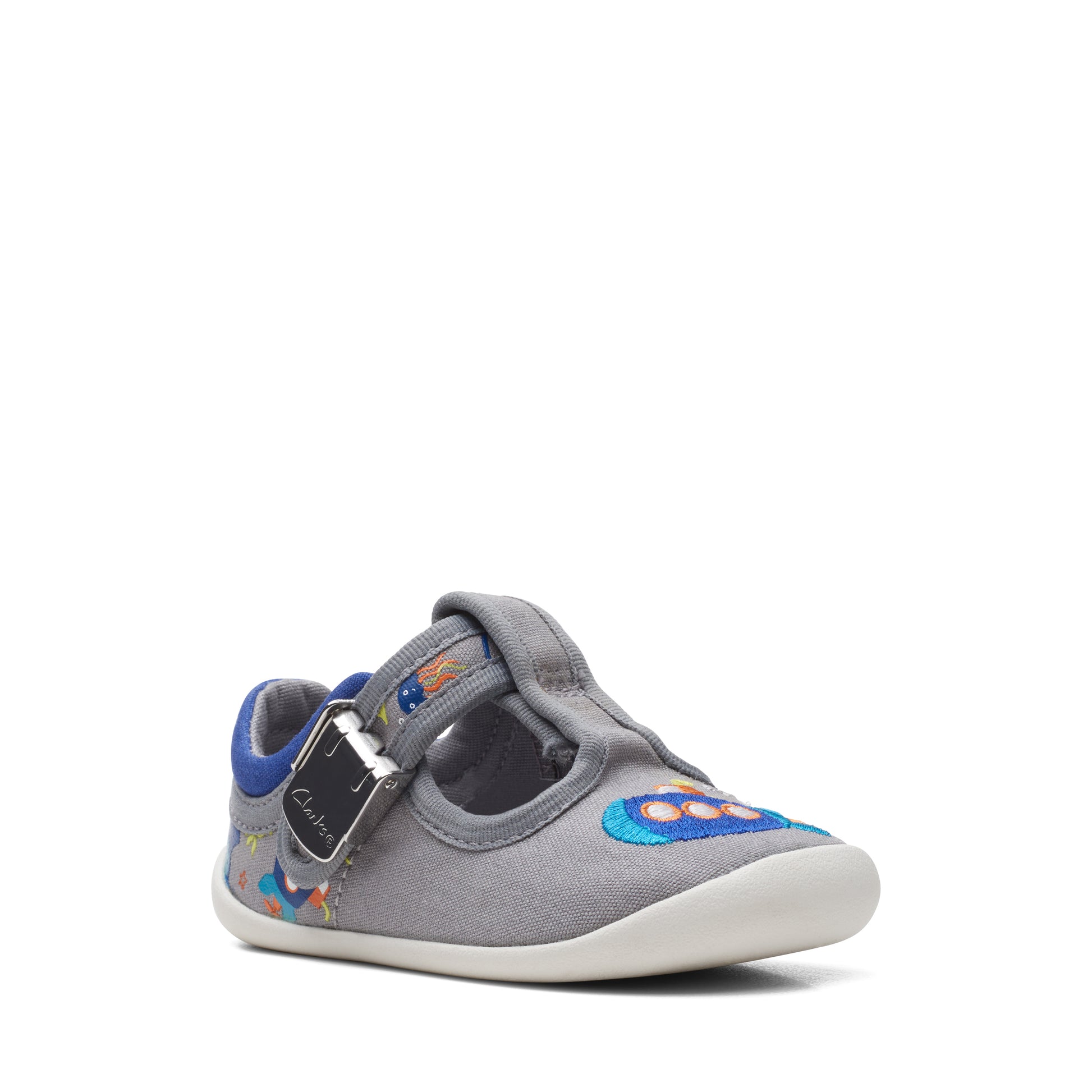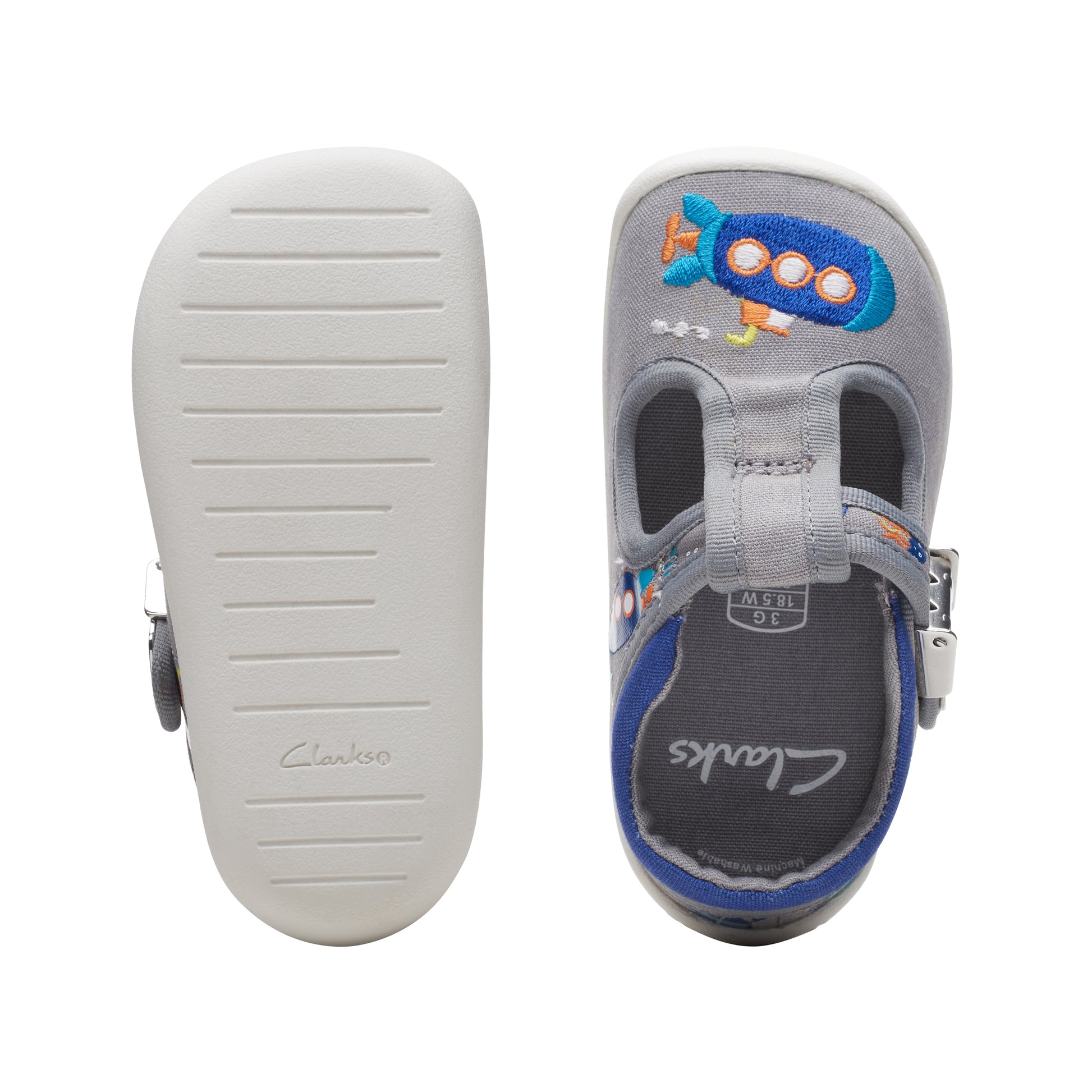 Clarks Roamer Sun T Boys Grey Submarine Canvas T-Bar Shoe