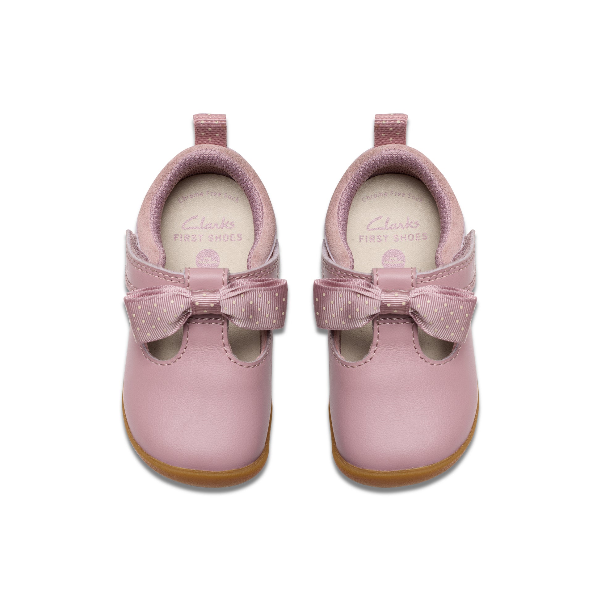Clarks Roamer Trim T Girls Dusty Pink Bow Shoe
