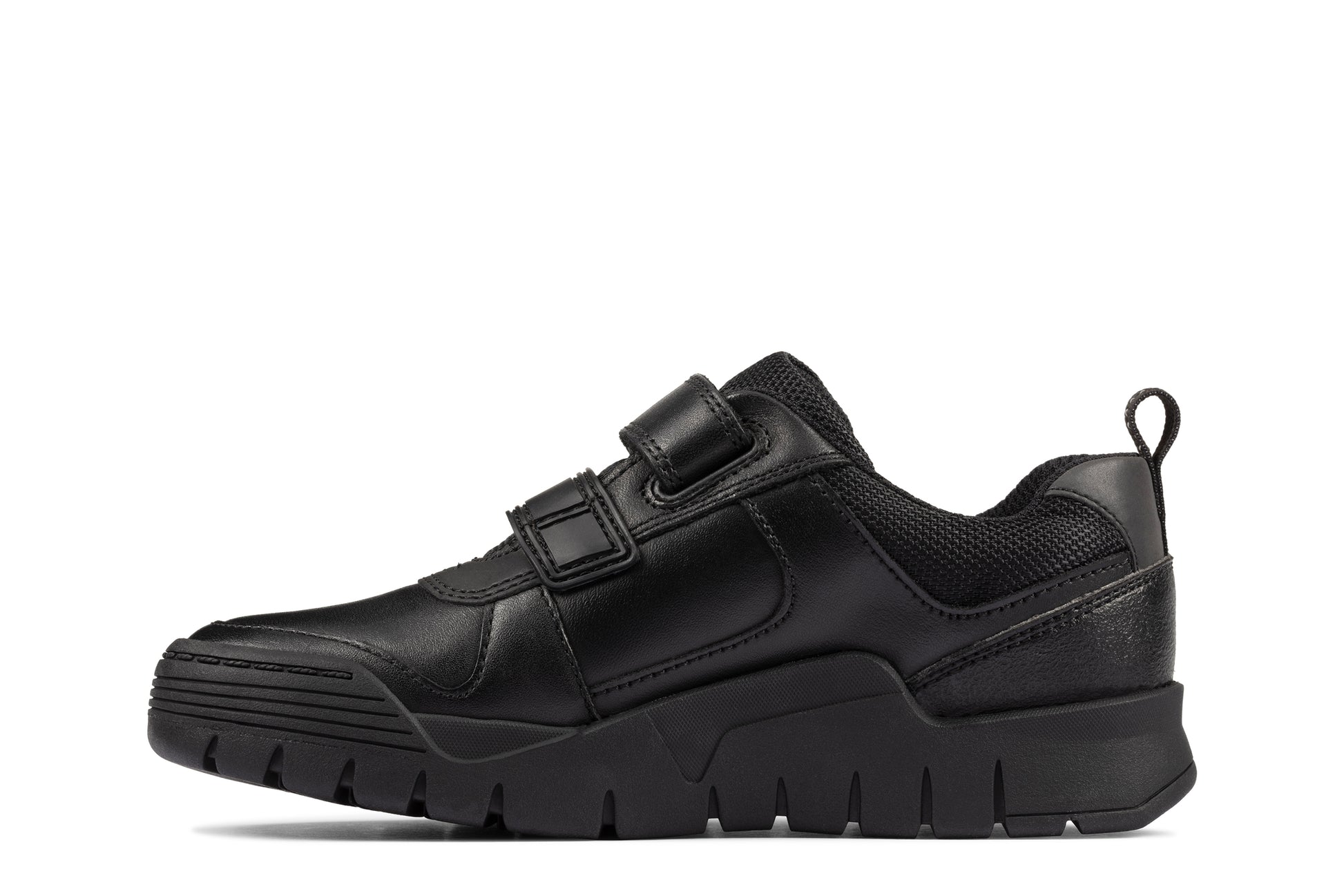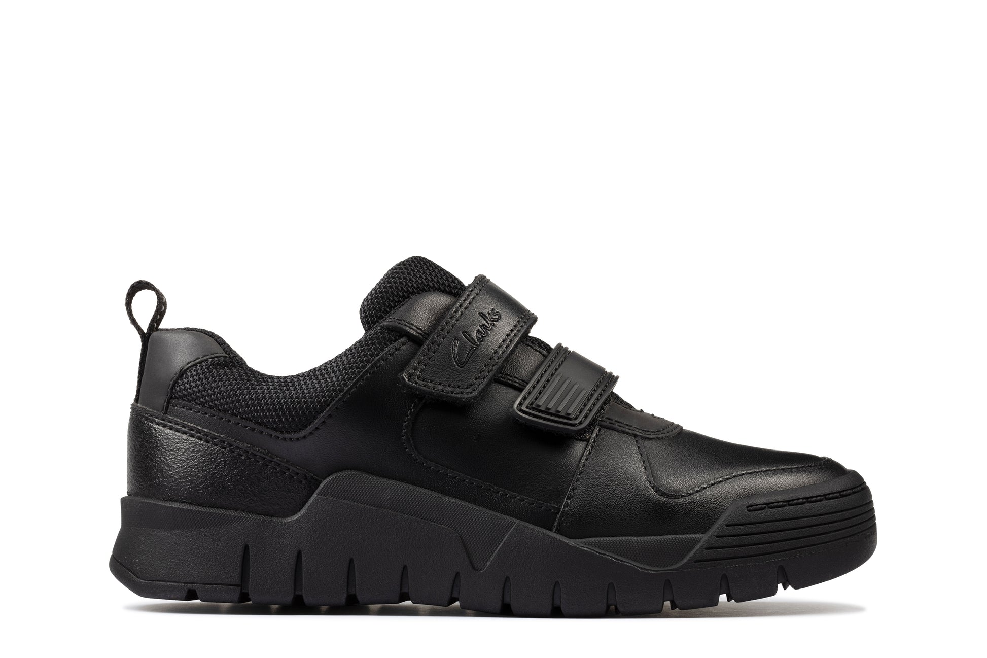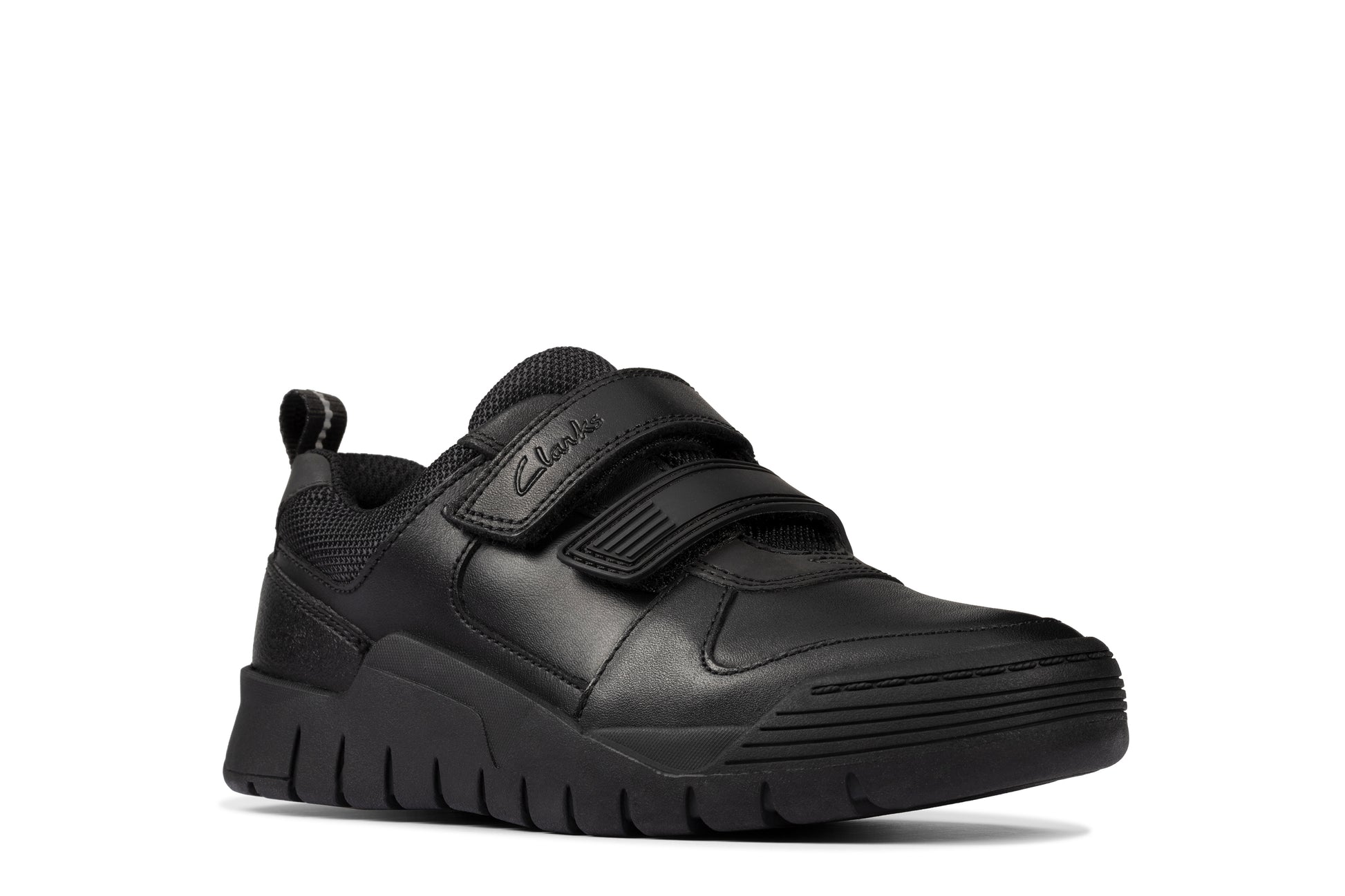 Get ready to play hard in the Clarks Scooter Speed Boys Black School Shoe. With its simple rip-tape fastening and durable design, these playground-ready shoes are the perfect choice for active kids. Plus, they'll love the sleek and stylish look of these school shoes!