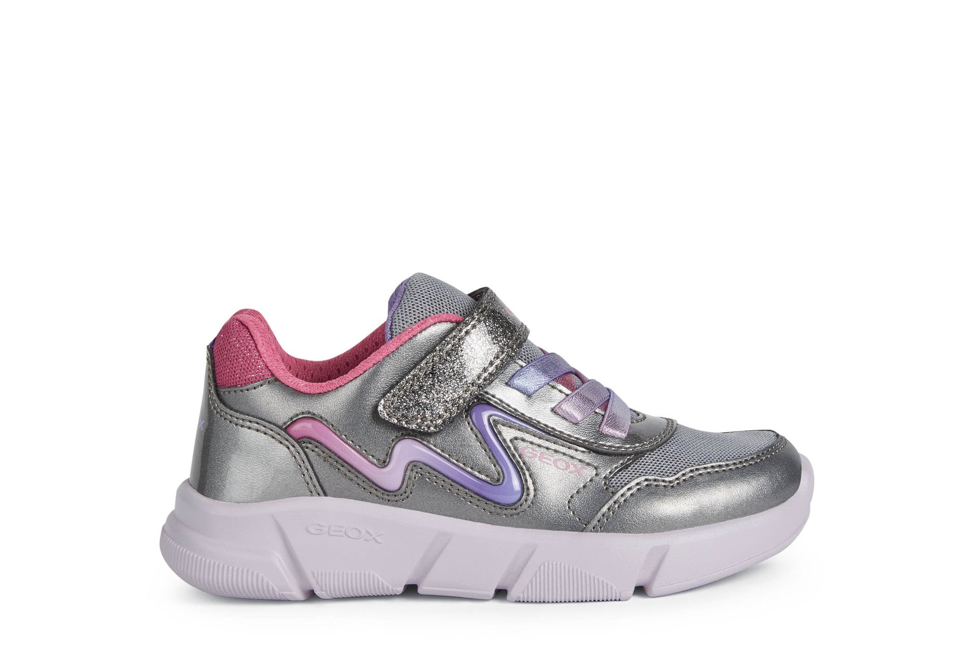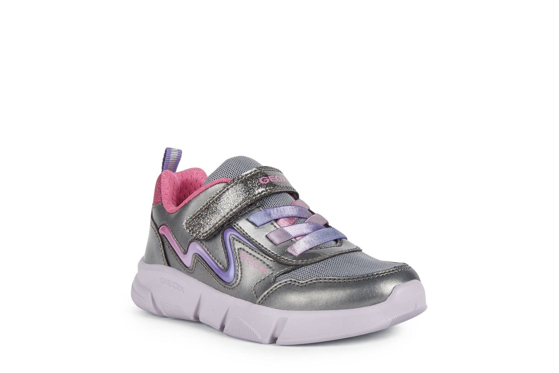 Geox Aril Girls Dark Silver-Lilac Light Up Trainer