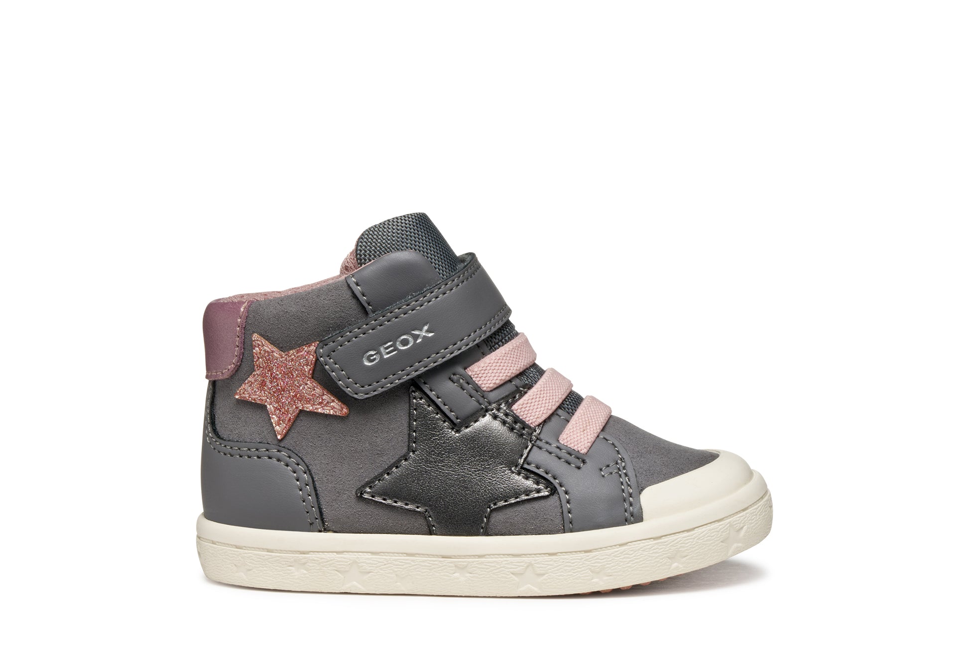 Step out in style with the Geox Gisli Girls Grey Pink Star Ankle Boot! Featuring a fun star motif and a high-top design, these boots add a playful sparkle to any outfit. The soft grey and pink colours blend perfectly for a trendy look, while the ankle height offers comfy support for little adventurers on the go. Perfect for everyday wear with a touch of starry charm!