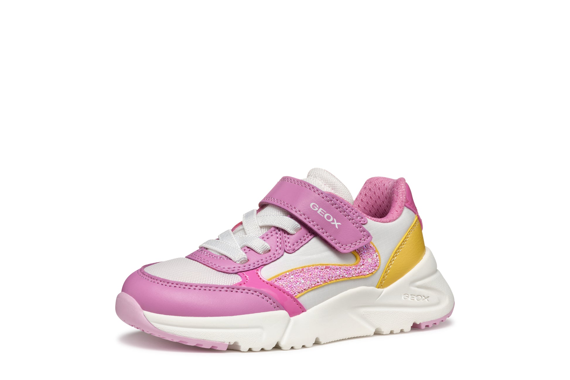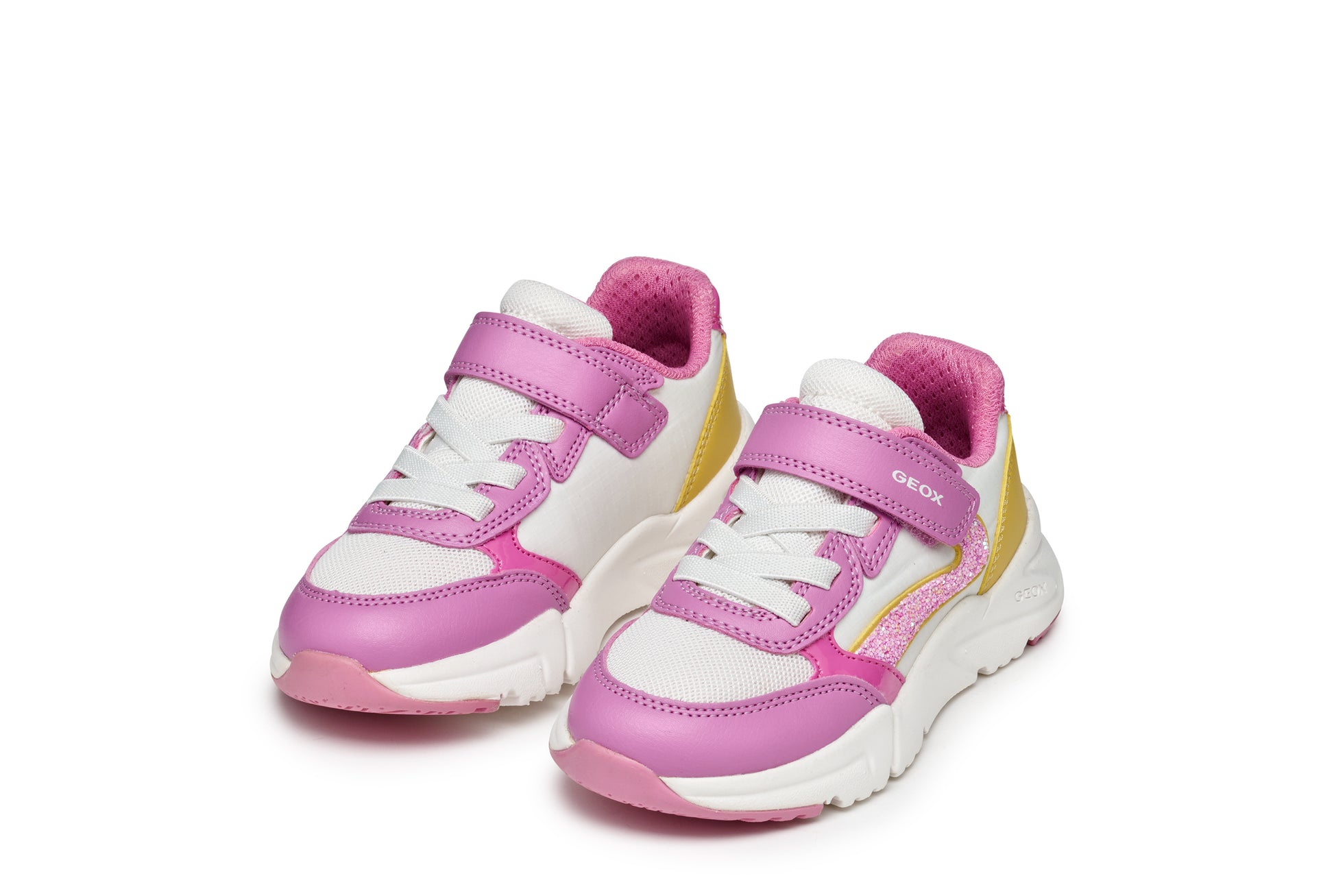 Experience ultimate comfort and style with the Geox Loftus Girls Pink Yellow Trainer. With a breathable sole and elastic lace and rip tape fastening, these trainers provide comfort all day long. Plus, the vibrant spring colors will add a pop of fun to any outfit. Don't miss out on this must-have for your little one!