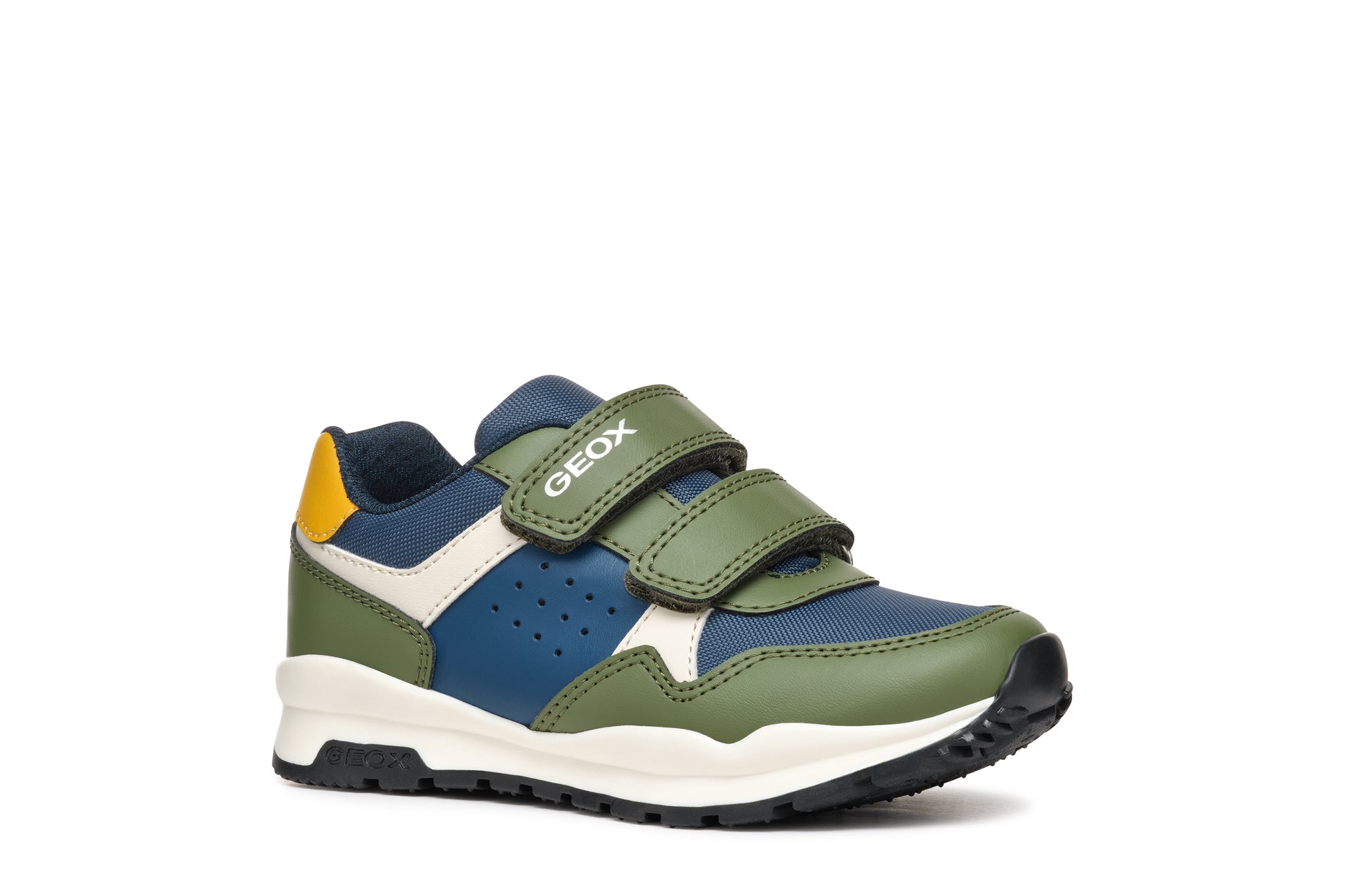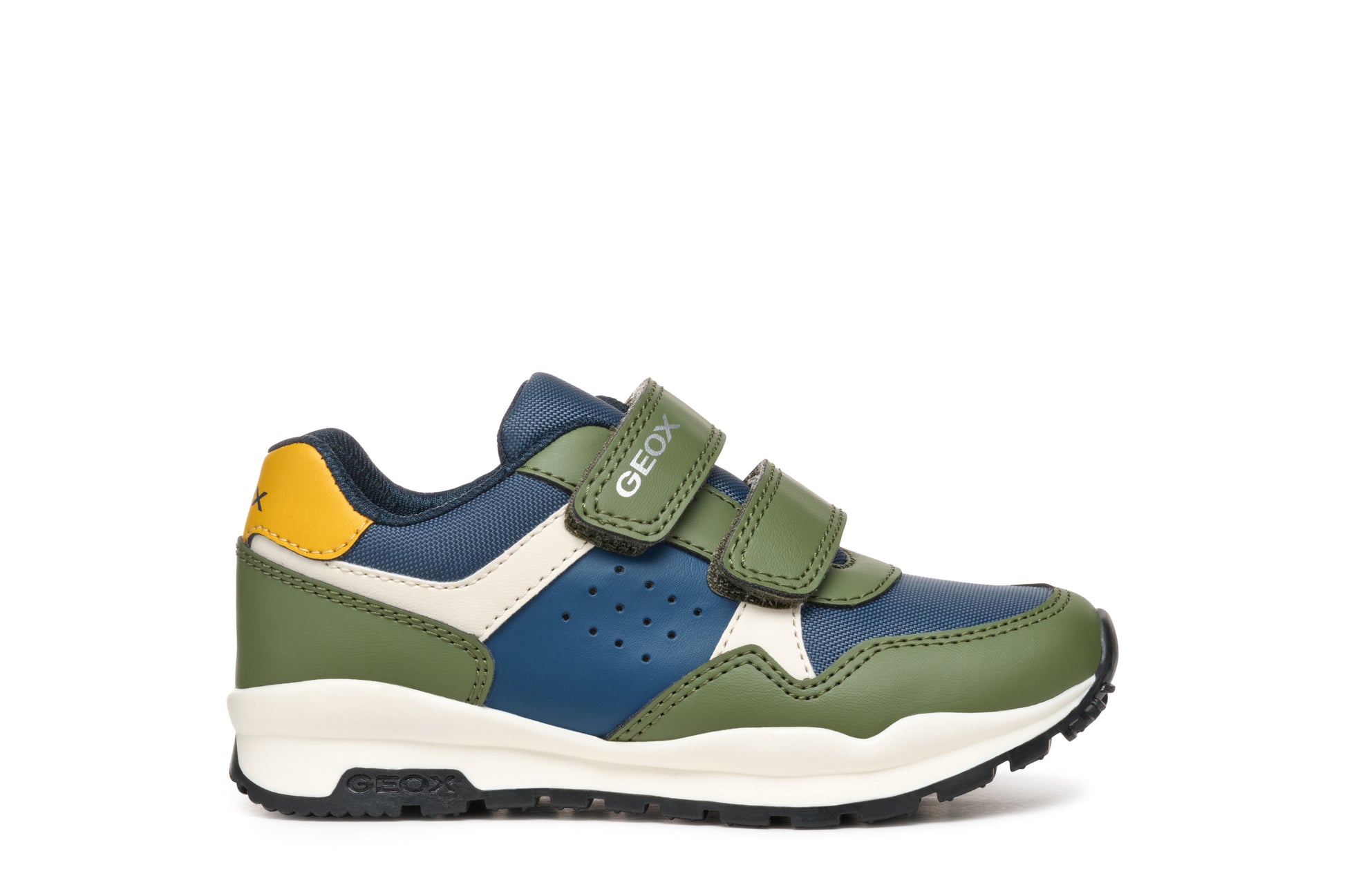 Make every step an adventure with the Geox Pavel military green and blue trainer. This spring essential features two straps for the perfect fit and a breathable sole for all-day comfort. Ready for action and style, these trainers will keep your little one's feet happy.