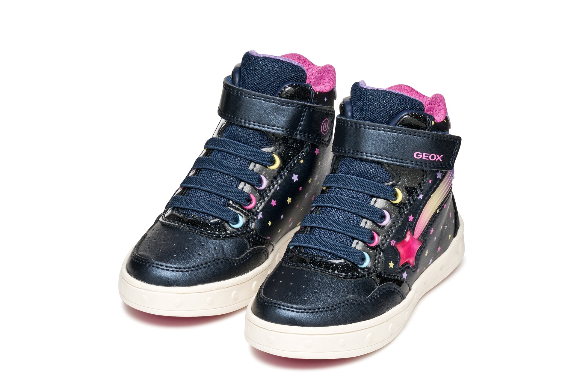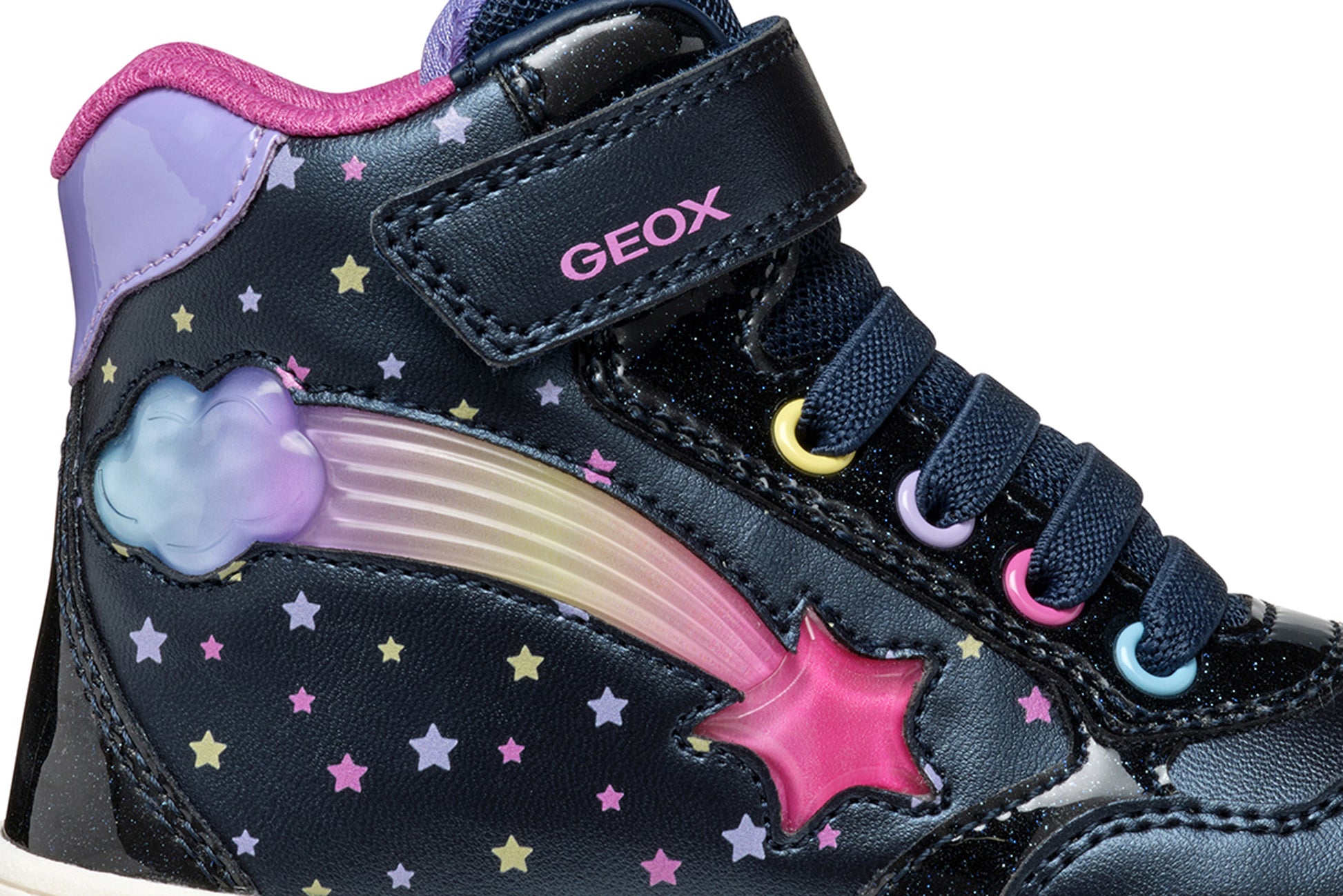Brighten every step with the Geox Skylin Girls Navy Multicolour Light Up Boot. Featuring playful flashing lights arranged in a shooting star motif, these boots dazzle with multicoloured stars that twinkle with each move. Perfect for adding fun and sparkle to any outfit while offering comfort and style for little adventurers.