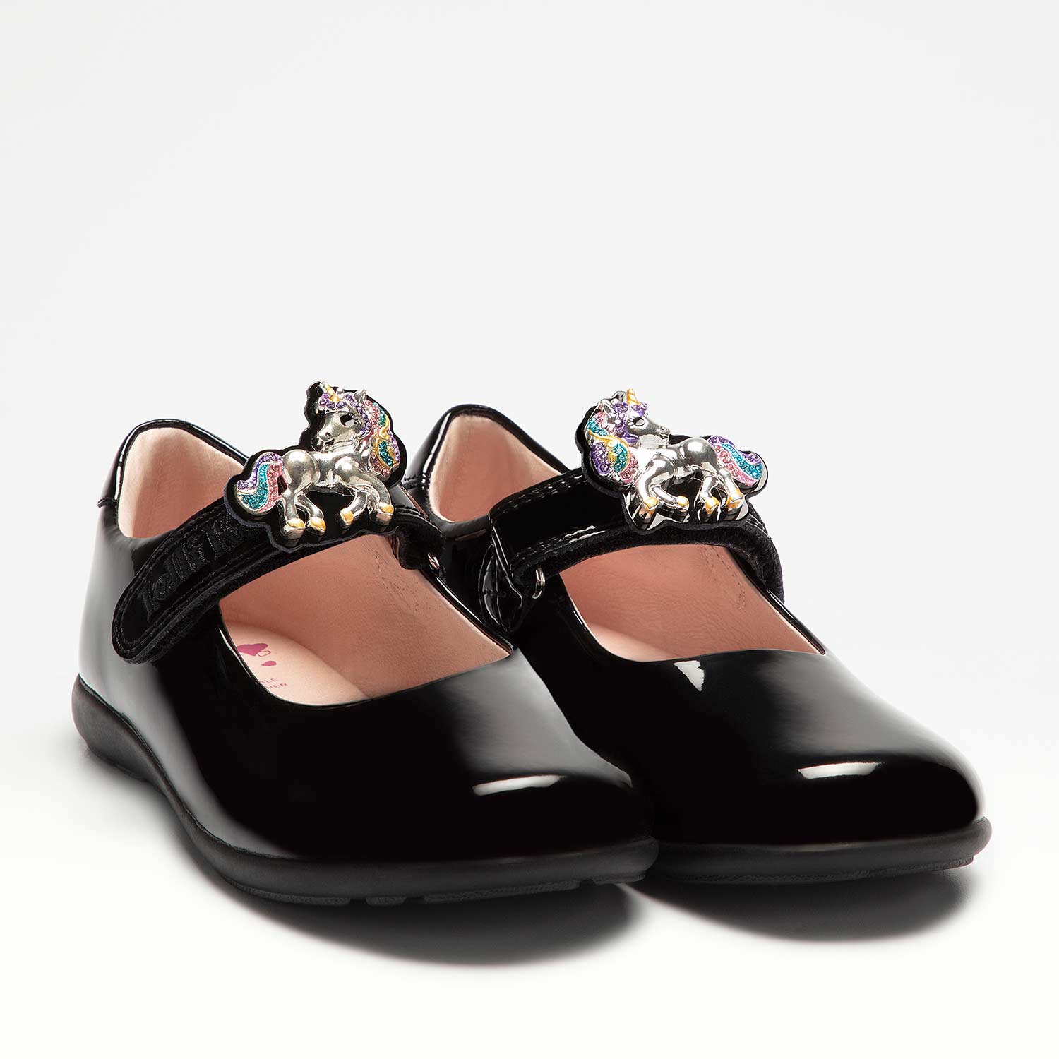 Lelli Kelly Bella 2 Unicorn Girls Black Patent School Shoe G Width