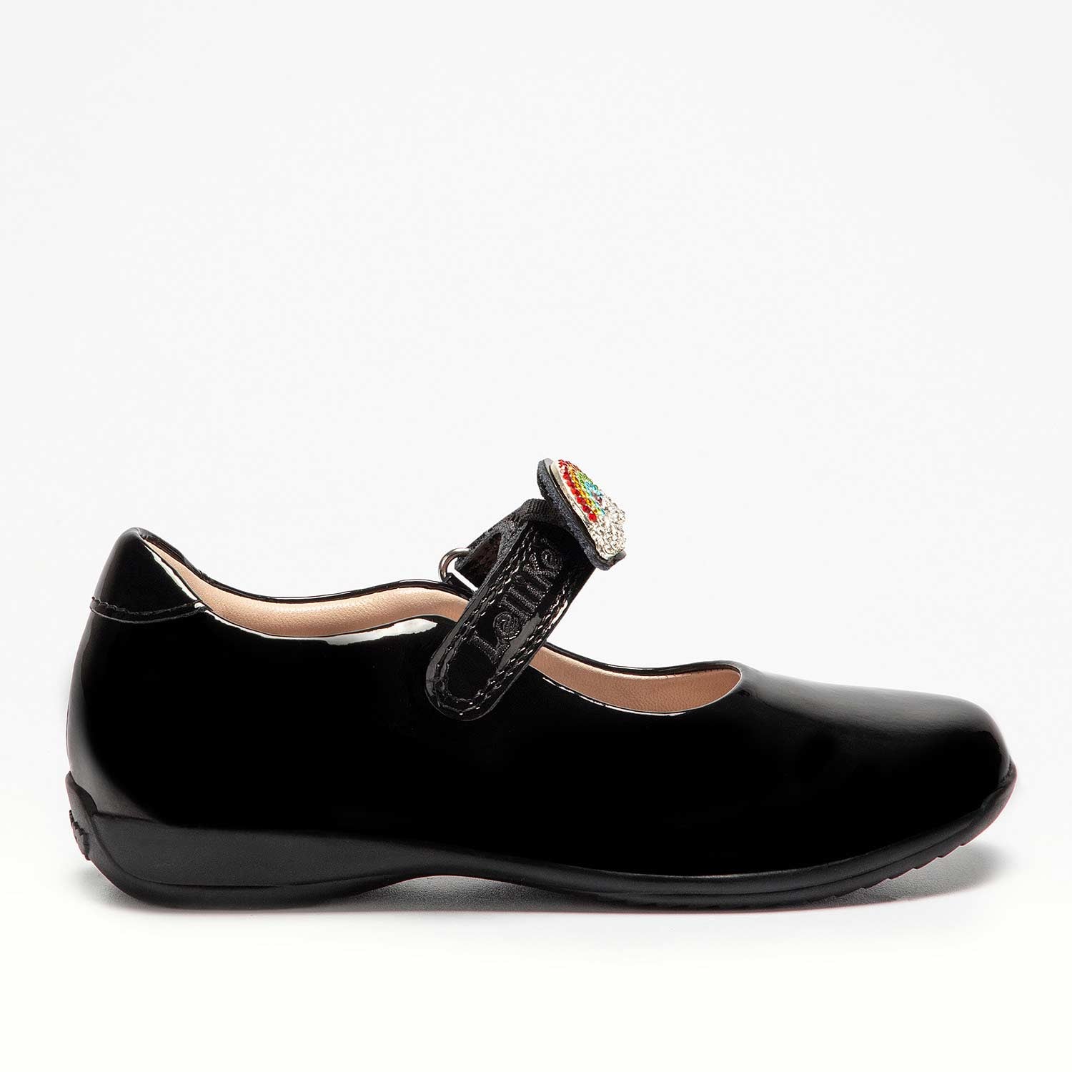 Lelli Kelly Brite 2 Rainbow Girls Black Patent School Shoe F Width