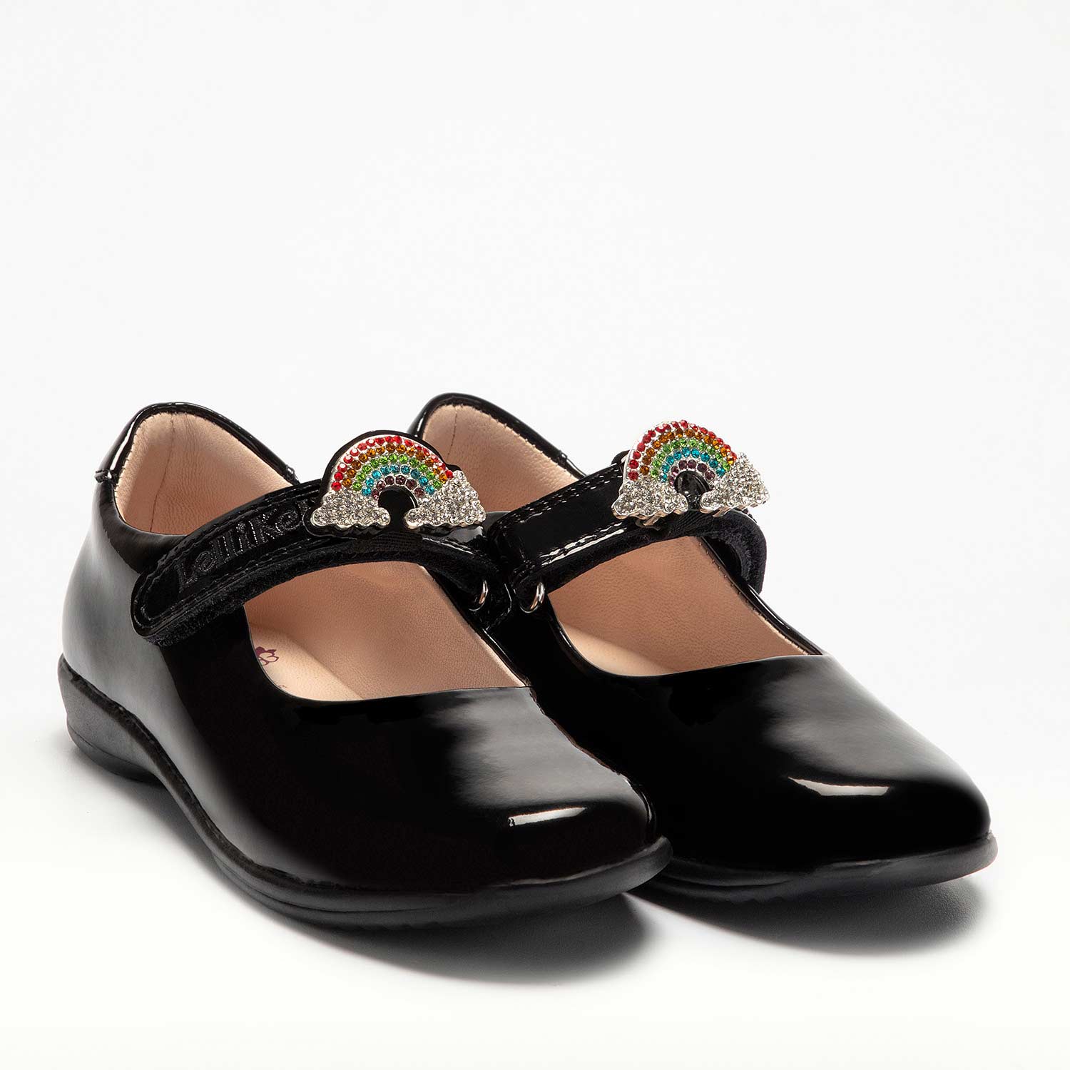Step into school days with a burst of fun! The Lelli Kelly Brite 2 Rainbow Girls Black Patent School Shoe features a shiny black patent finish and a playful detachable rainbow strap charm. Designed with a comfortable F width, these shoes brighten up any uniform while offering a perfect fit for little feet. Durable and delightful, they make every step a colourful adventure!