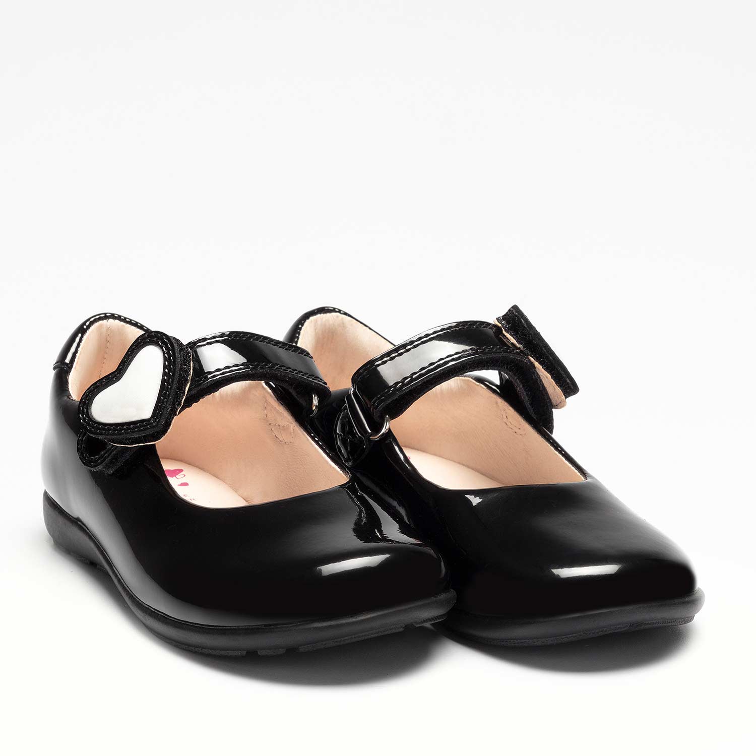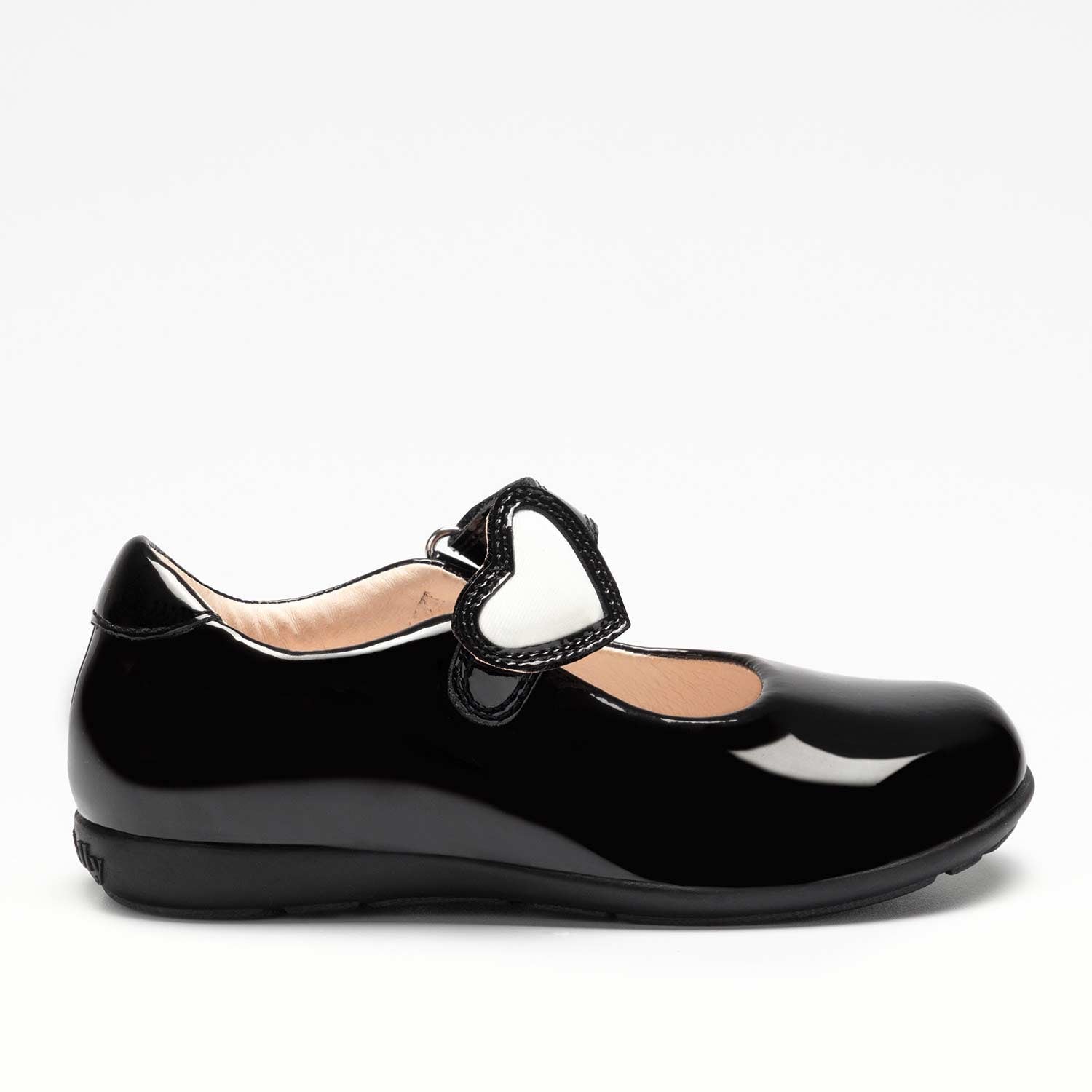 Lelli Kelly Colourissima Heart Girls Black Patent School Shoe G Width
