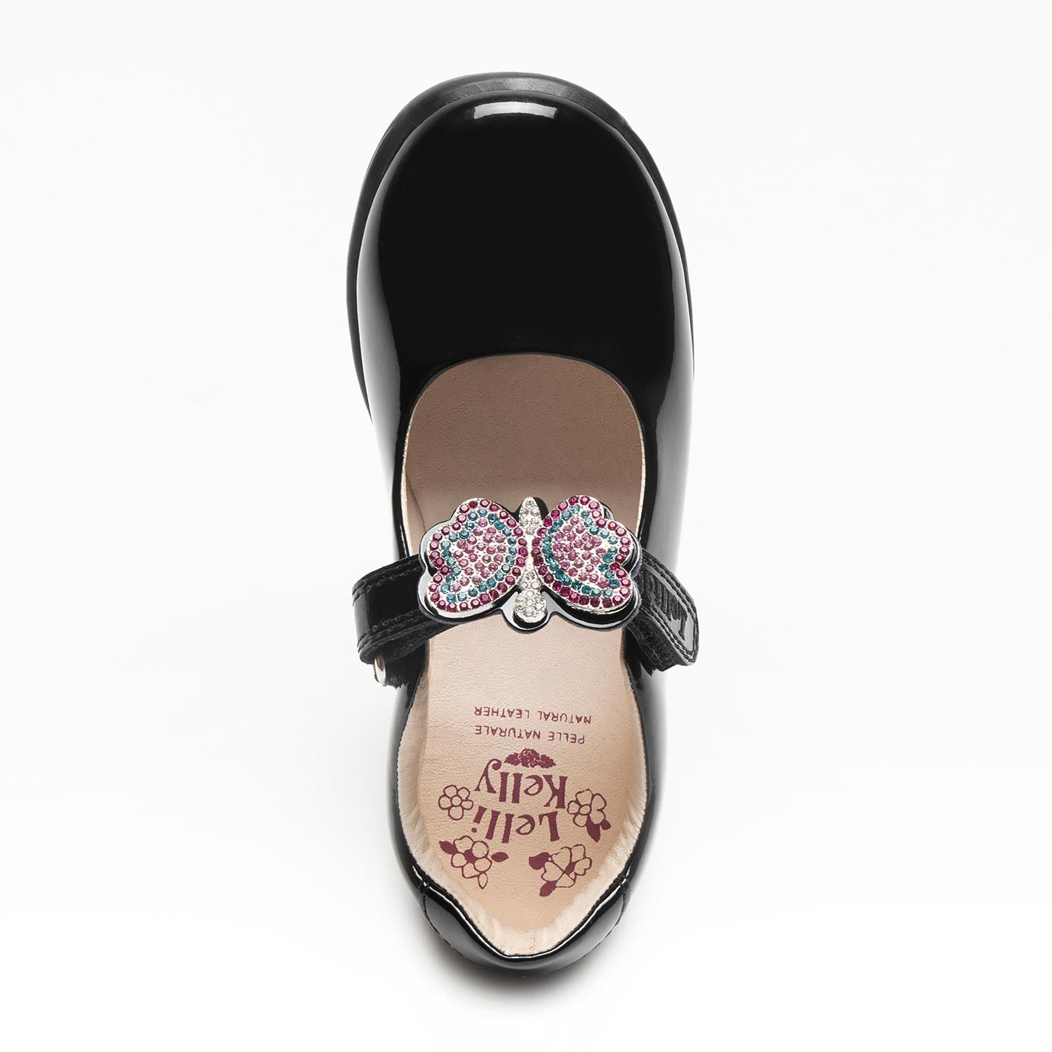 Lelli Kelly Luna Butterfly Girls Black Patent School Shoe