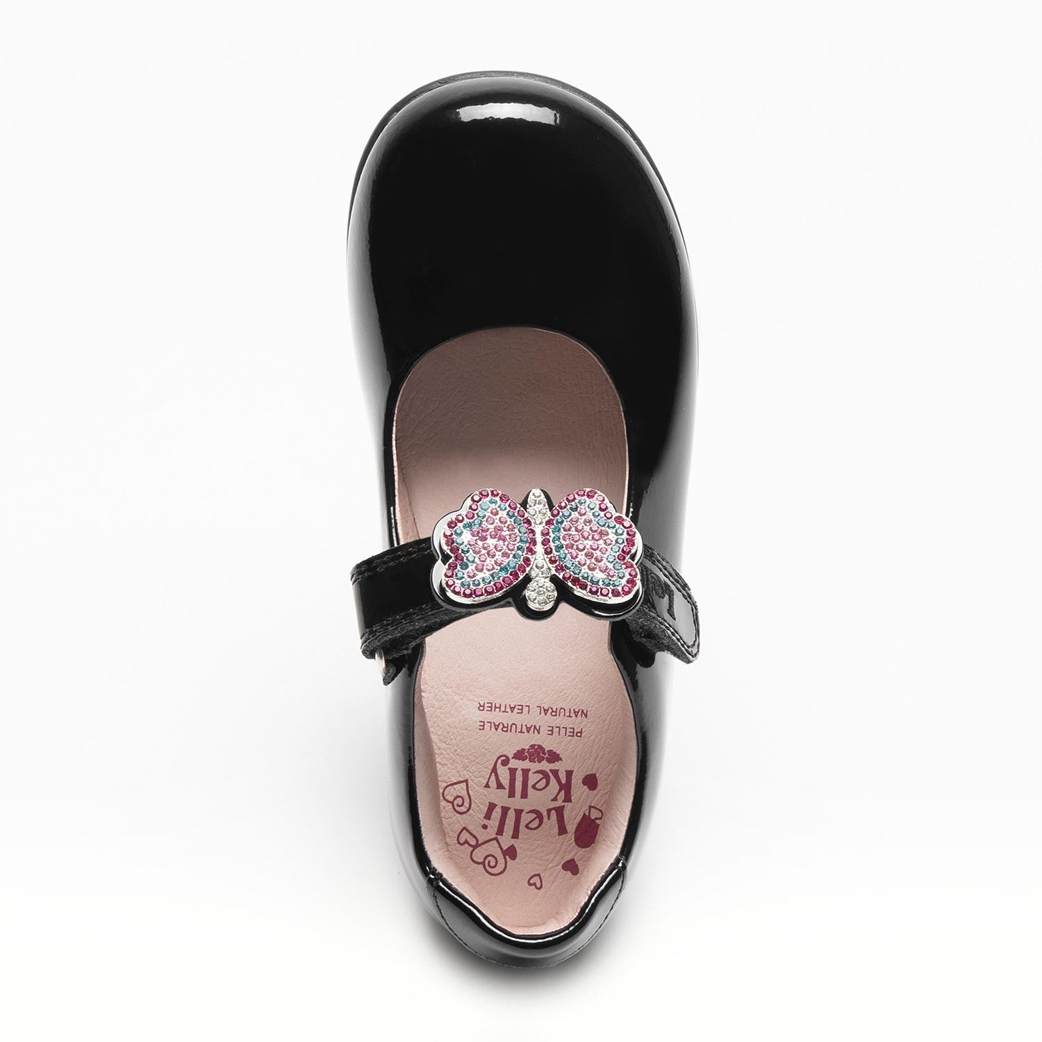 Lelli Kelly Luna Butterfly Girls Wide Black Patent School Shoe