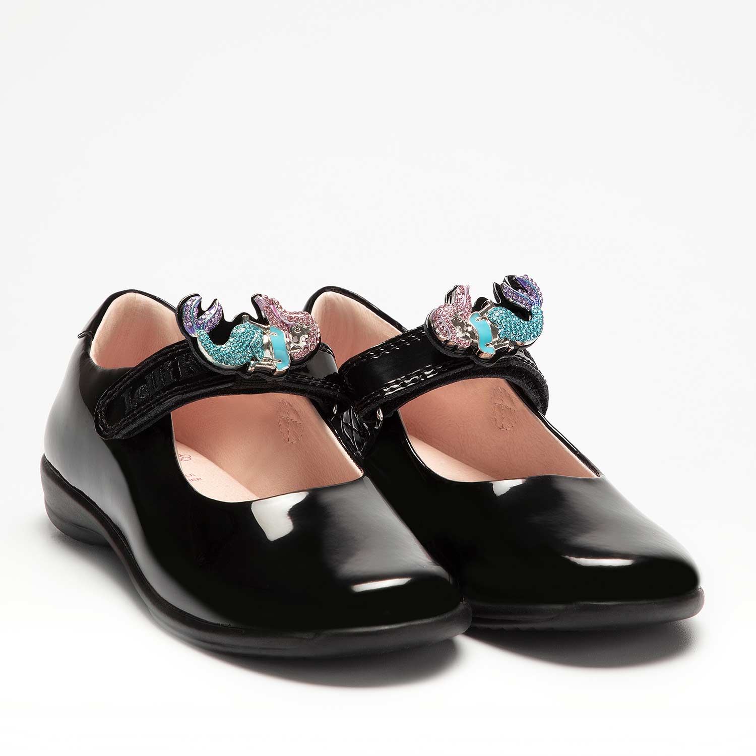 Lelli Kelly Maribella Mermaid Girls Black Patent School Shoe F Width