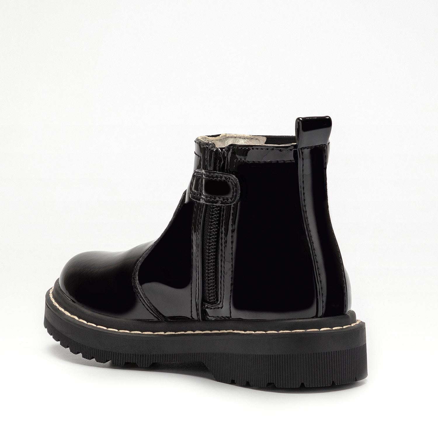 Step out in style with the Lelli Kelly Ruth Girls Black Patent Ankle Boot! Featuring a shiny patent finish, elastic gusset, and an easy inside zip, these boots combine fun and convenience. The thick sole adds extra comfort and durability, perfect for playful adventures in school or out.