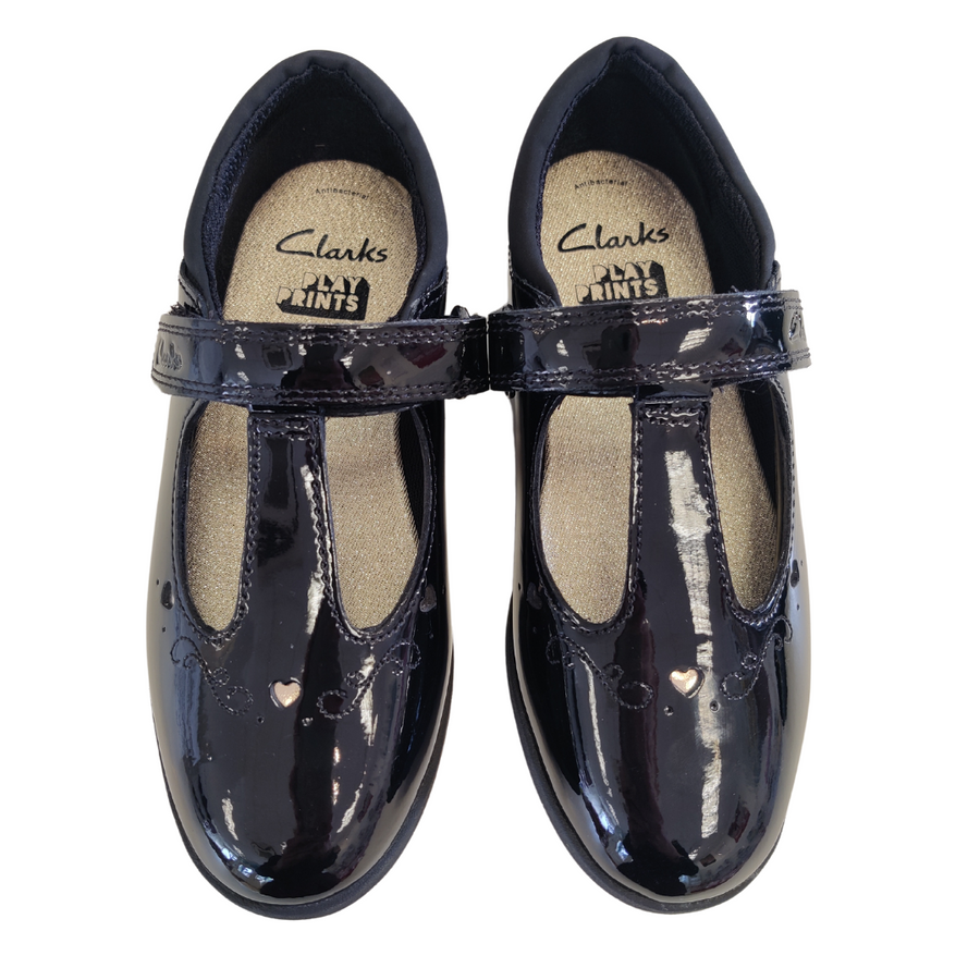 Clarks Magic Step Lo Girls Black Patent T-Bar School Shoe