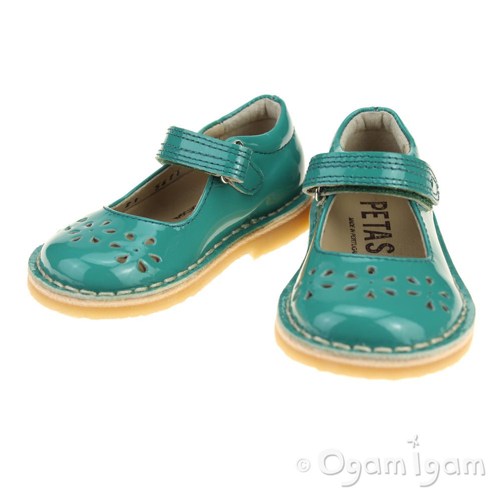 These fun shoes are perfect for the summer months as turquoise can add a pop of beach-life to any occasion. They are not only a fun touch to any outfit but are also practical as they have are a Mary Jane style and have a single rip-tape strap for easy fastening. They are made out of 100% leather and have a synthetic sole for great grip. They are also finished off with subtle flower detailing for that perfectly girl-y look.