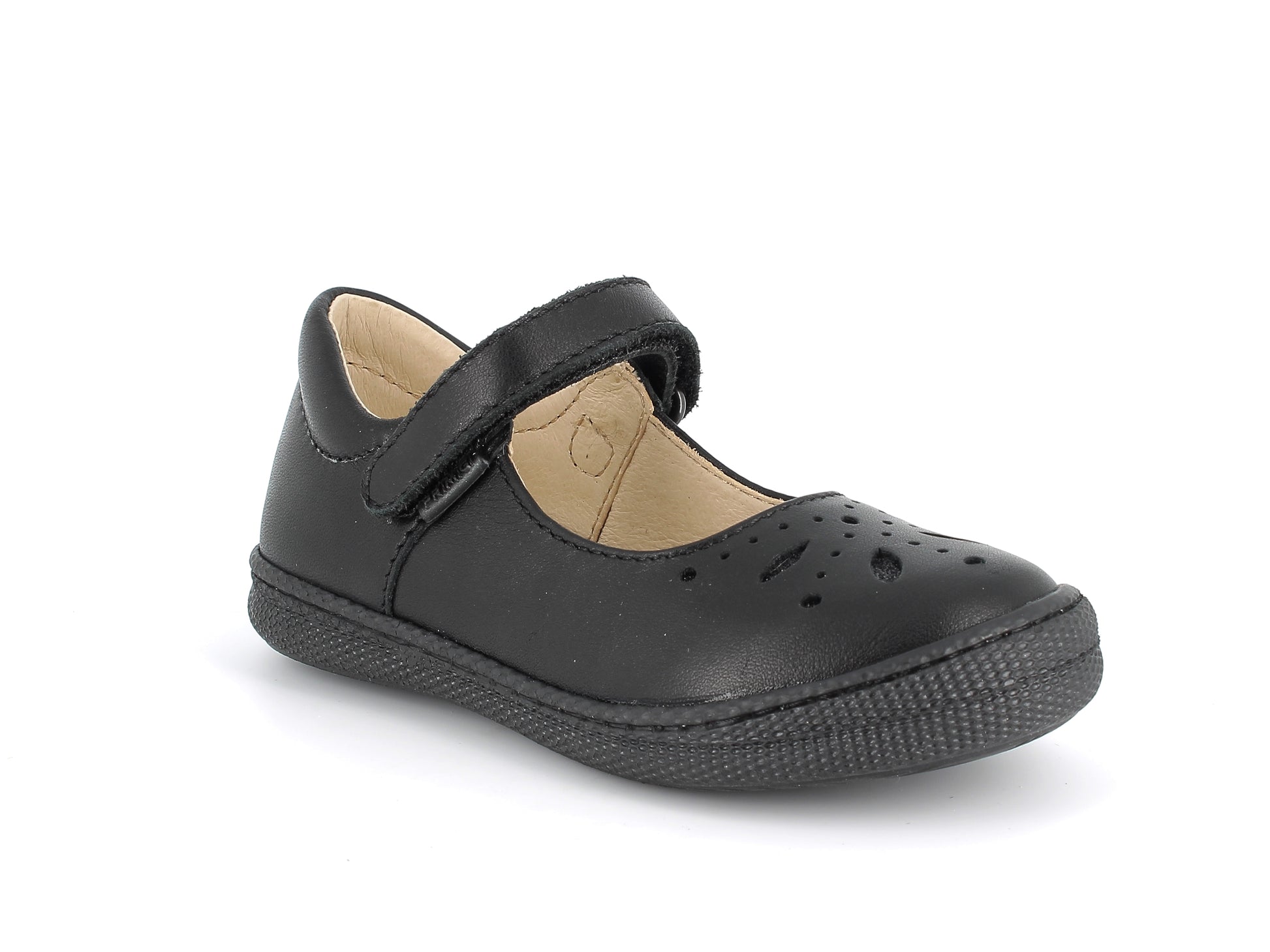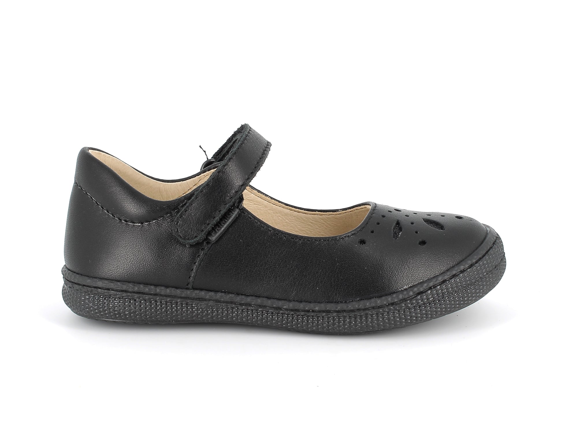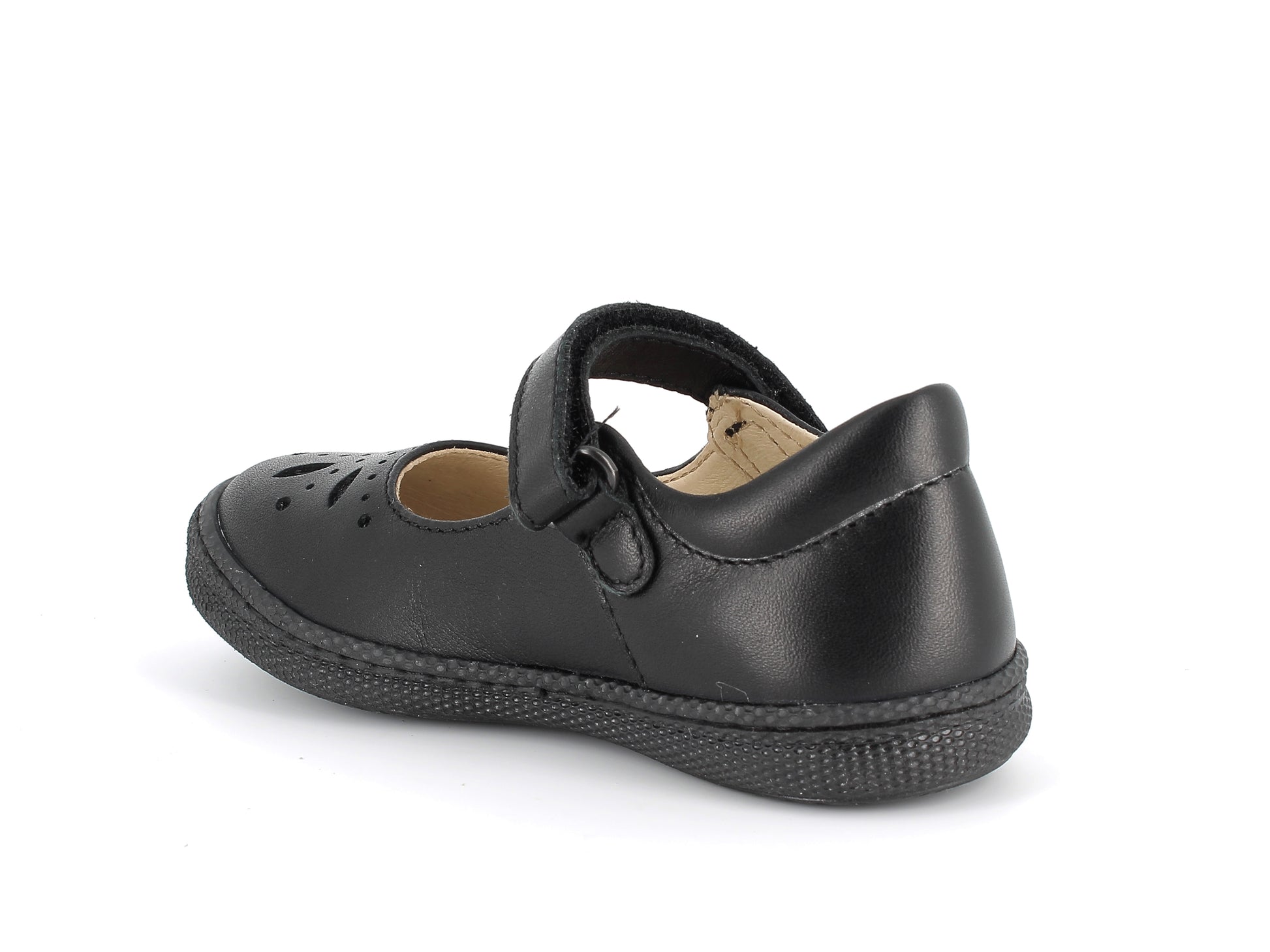 This Primigi Clemence school shoe combines classic style with thoughtful comfort for growing feet. Crafted from smooth black leather, it features charming floral perforations at the toe that reveal subtle black metallic petals, adding a touch of elegance to the traditional Mary Jane design. The adjustable slim rip tape strap ensures a secure and customizable fit, while the all-leather interior with padded heel and insole cushions every step. A durable black sole unit extends over the toe for extra protection, making this shoe both practical and stylish for everyday school wear.