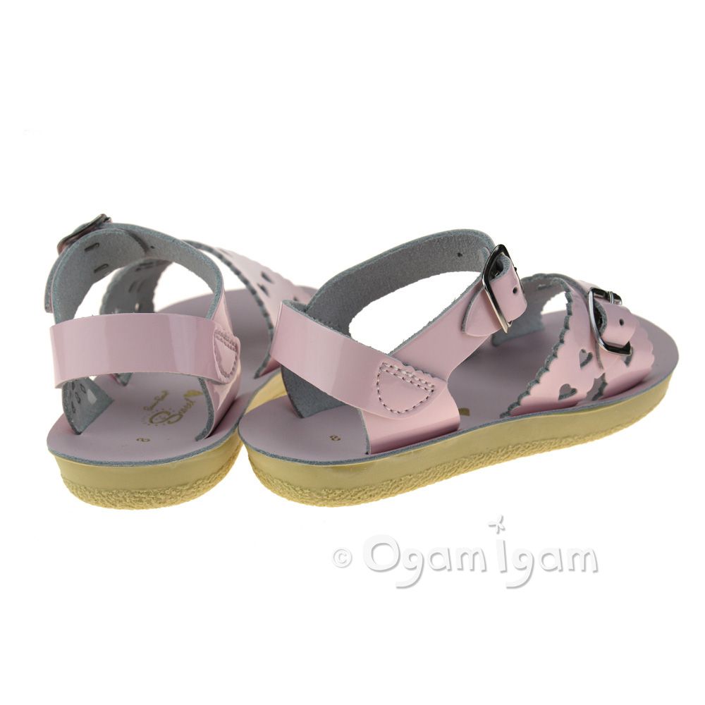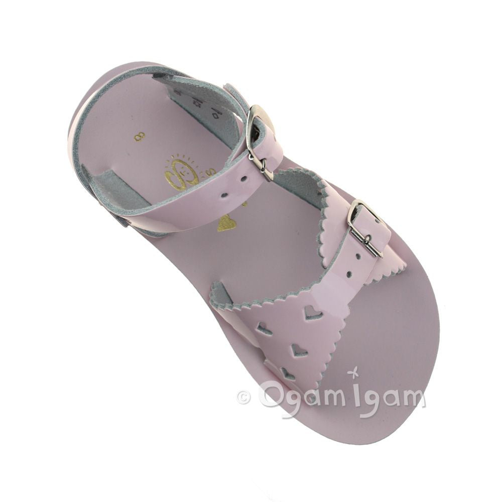 A pretty sandal with heart shape cut-outs and scalloped edges. The Sweetheart is fully adjustable with buckled toe and ankle straps. Featuring a comfortable spongy urethane sole with rust proof buckles, they can be worn in the water and put through a cool machine wash. This Sweetheart comes in a shiny soft pink finish. It looks very pretty on and is the perfect sandal for girls who like to be comfy and gorgeous at the same time.