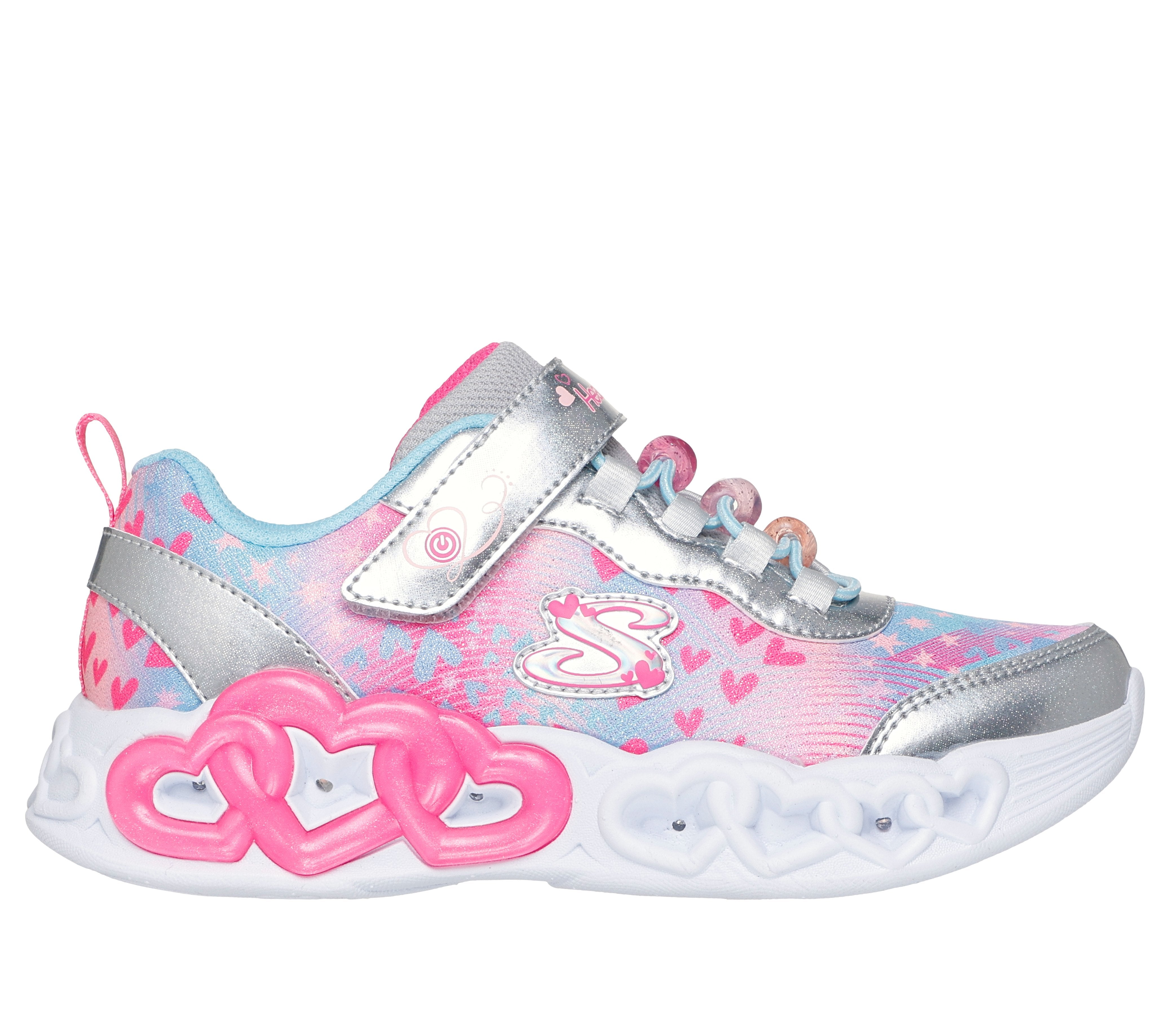 Skechers Infinite Heart Lights Girls Silver Multi Light Up Trainer