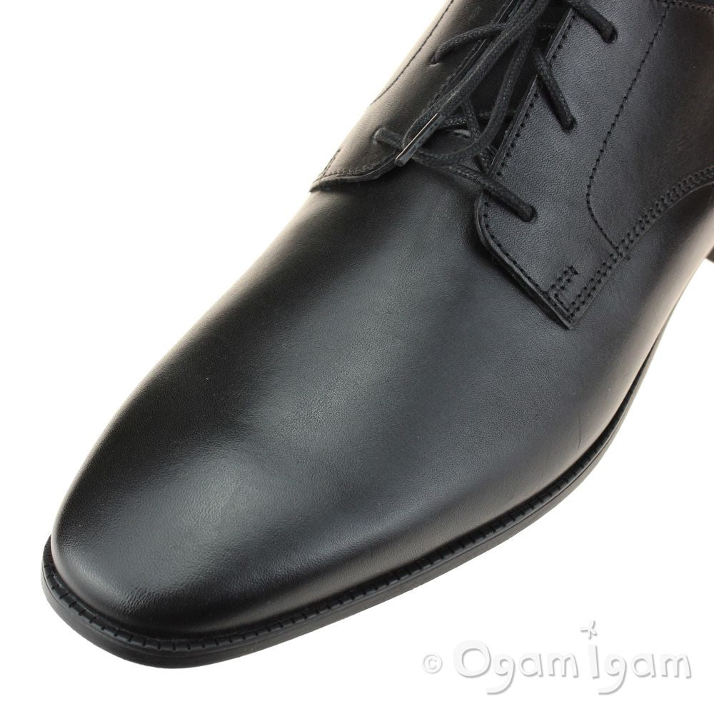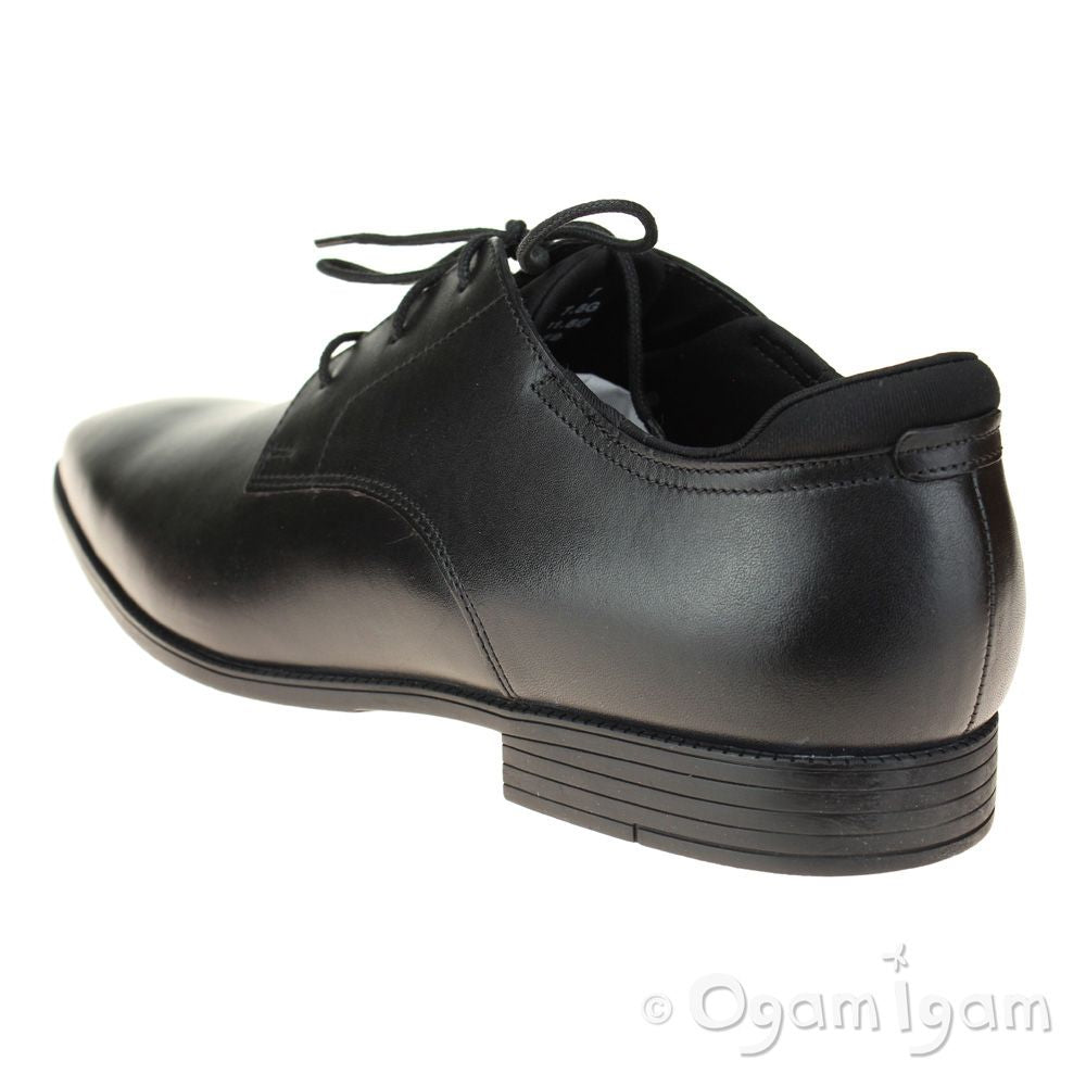 The 'Academy' by Start-rite is a sleek boys school shoe in smooth black leather. The lace up style is secured with a three hole lace system with round black laces to compliment the all black look. The shoe supports everyday comfort with a padded ankle collar and tongue, in addition to a leather insole. A smart black stacked sole unit completes the shoe.