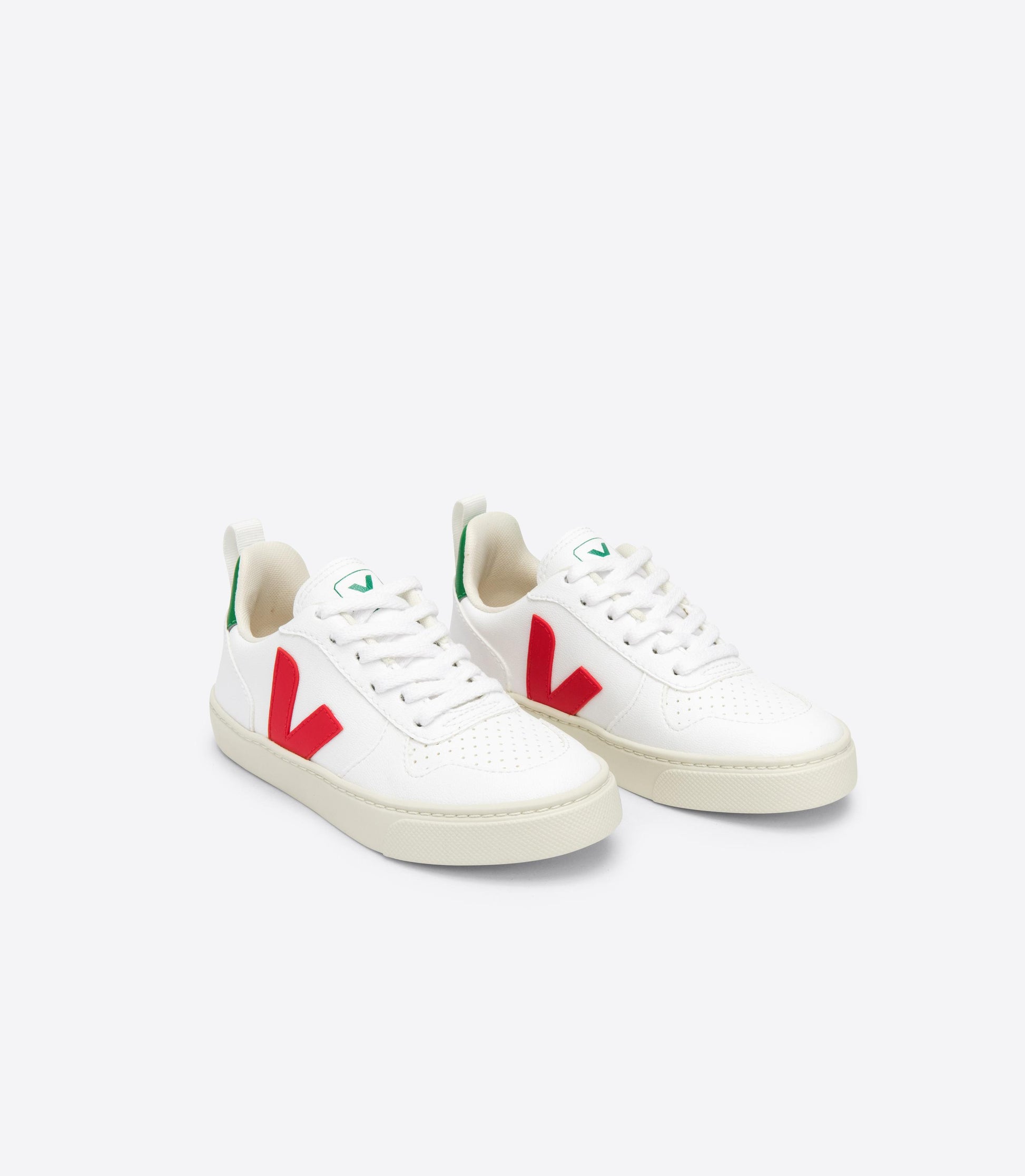 Veja V-10 Lace Boys Girls White Pekin Emeraude Trainer